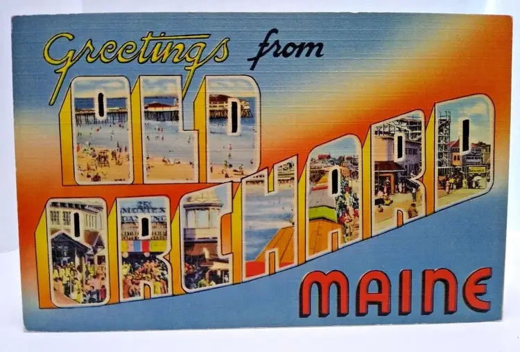 Size: Standard (5.5 x 3.5 in) Custom Bundle: No Continent: North America Region: Maine Country: USA Type: Linen Postcard Year Manufactured: 1948 Number of Items in Set: 1 Signed: No Original/Licensed Reprint: Original Occasion: Sayings & Quotes City: Old Orchard Time Period Manufactured: 1930-1945 Unit of Sale: Single Unit Era: Linen (1930-1945) Artist: Unknown Country/Region of Manufacture: United States Material: Paper Theme: Big Letter, Large Letter, Block Letters, City, Cities & Towns, Greetings, Beach, Ocean, Beach Town Features: Large Letter Postcard Subject: Large Letter Postage Condition: Unposted Brand/Publisher: Tichnor Brothers Franchise: Unknown
