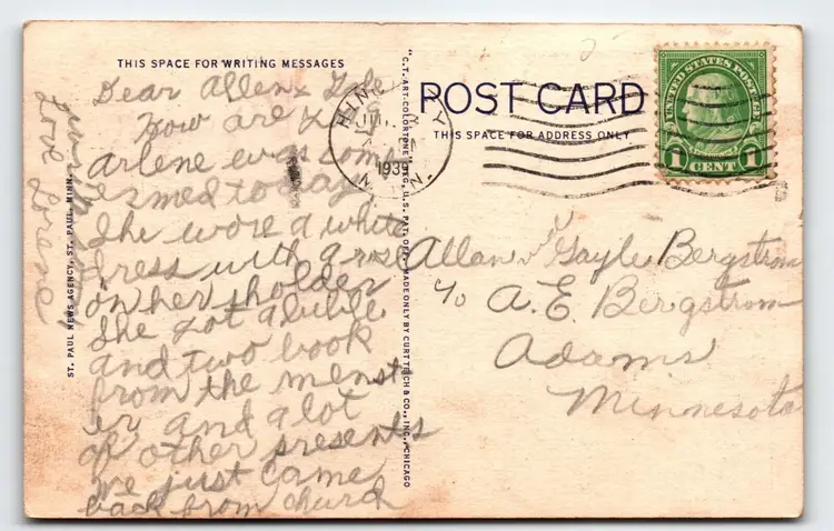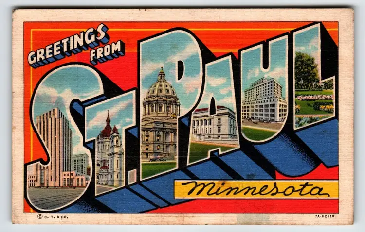 Number of Items in Set: 1 Unit of Sale: Single Unit Artist: Unknown Occasion: Sayings & Quotes Size: Standard (5.5 x 3.5 in) Signed: No Custom Bundle: No Year Manufactured: 1939 Material: Paper City: St. Paul Original/Licensed Reprint: Original Franchise: Does Not Apply Brand/Publisher: Curt Teich Subject: Large Letter Continent: North America Type: Linen Postcard Era: Linen (1930-1945) Region: Minnesota Country: USA Theme: Art, Cities & Towns, Greetings, Roadside America, Social History, Tourism, Travel, Big Letter, Large Letter, Block Letters, States Features: Large Letter Postcard Time Period Manufactured: 1930-1945 Country/Region of Manufacture: United States Postage Condition: Posted