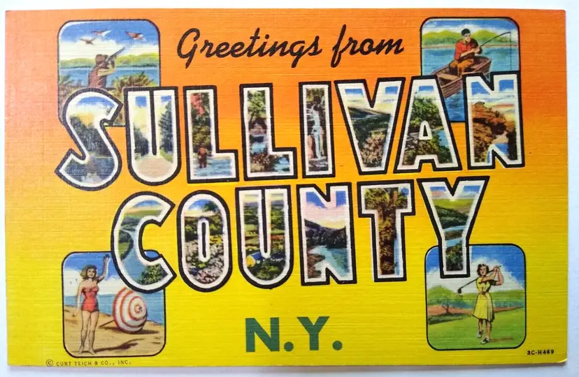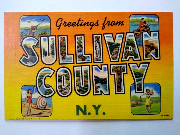 Number of Items in Set: 1 Unit of Sale: Single Unit Artist: Unknown Occasion: Sayings & Quotes Size: Standard (5.5 x 3.5 in) Signed: No Custom Bundle: No Year Manufactured: 1945 Material: Paper City: Sullivan County Original/Licensed Reprint: Original Franchise: None Brand/Publisher: Curt Teich Subject: Large Letter Continent: North America Type: Linen Postcard Era: Linen (1930-1945) Region: New York Country: USA Theme: Agriculture, Cities & Towns, Greetings, Roadside America, Tourism, Travel, Big Letter, Large Letter, Block Letters, Buildings Features: Large Letter Postcard Time Period Manufactured: 1930's-1950's Country/Region of Manufacture: United States Postage Condition: Unposted