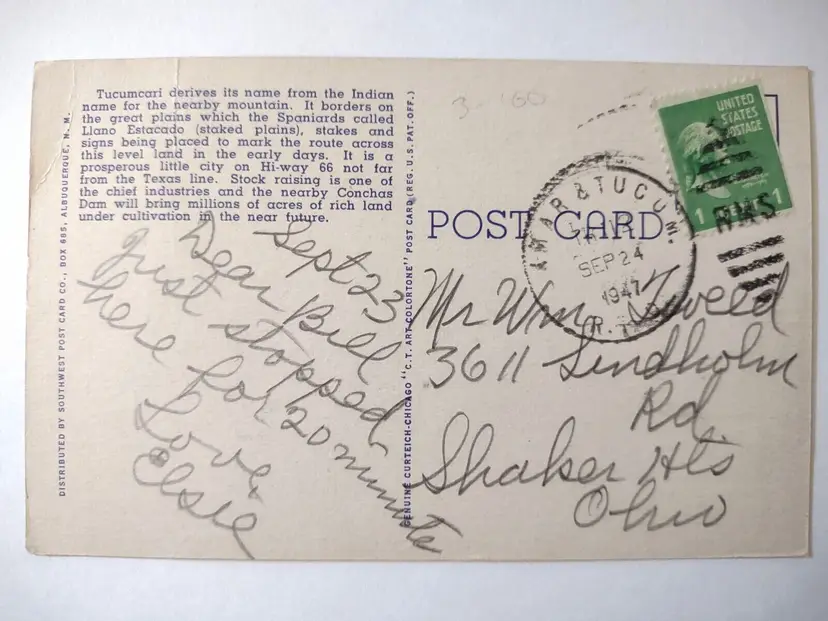 Number of Items in Set: 1 Unit of Sale: Single Unit Artist: Unknown Occasion: Sayings & Quotes Size: Standard (5.5 x 3.5 in) Signed: No Custom Bundle: No Year Manufactured: 1947 Material: Paper City: Tucumcari Original/Licensed Reprint: Original Franchise: Unknown Brand/Publisher: Curt Teich Subject: Large Letter Continent: North America Type: Linen Postcard Era: Post-War (1945-Now) Region: New Mexico Country: USA Theme: Architecture, Big Letter, Block Letters, Buildings, Cities & Towns, Community Life, Cowboys & Western, Cultures & Ethnicities, Greetings, Large Letter, Roadside America, Tourism Features: Large Letter Postcard, Buildings, Scenic, Greetings, Greetings From, Big Letter Time Period Manufactured: 1930's-1950's Country/Region of Manufacture: United States Postage Condition: Posted