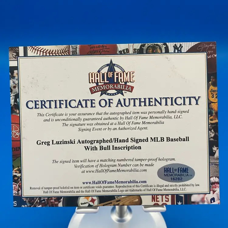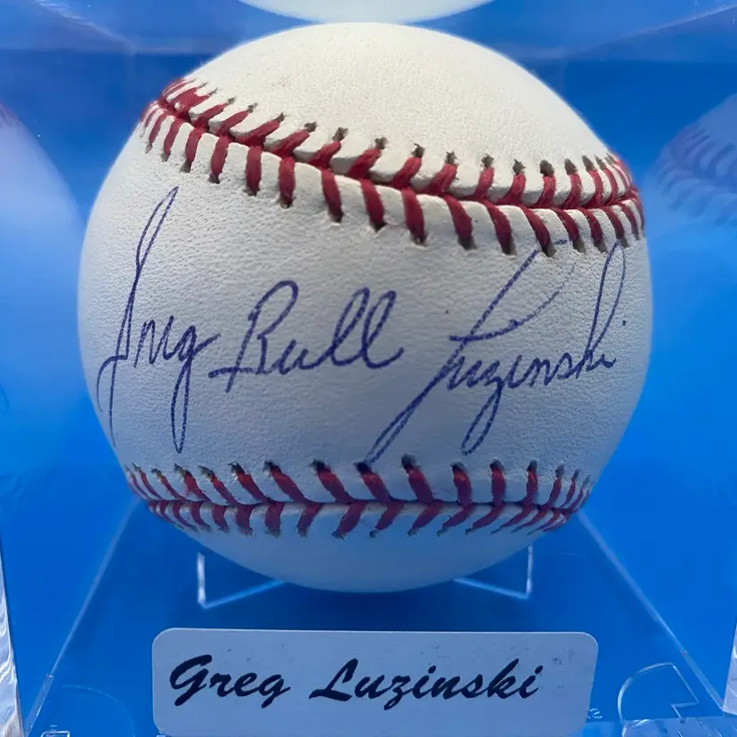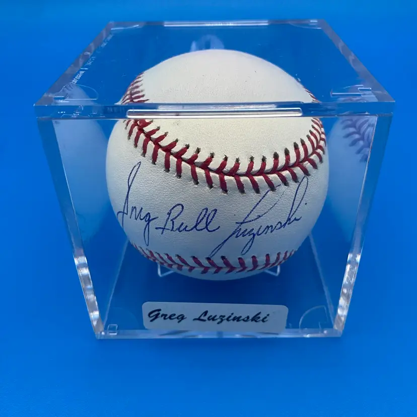 You are purchasing one Greg 'Bull' Luzinksi Signed Rawlings Official Major League Baseball. This ball includes one hard plastic display case, one certificate authenticity w/ sticker by Tidewater Sports & Collectibles from 2007, and one w/ sticker by Hall of Fame Memorabilia. This Baseball is in in overall good condition. See images for a closer look at each angle. No chips or cracks in the case. No rips or cracks on the certificates.