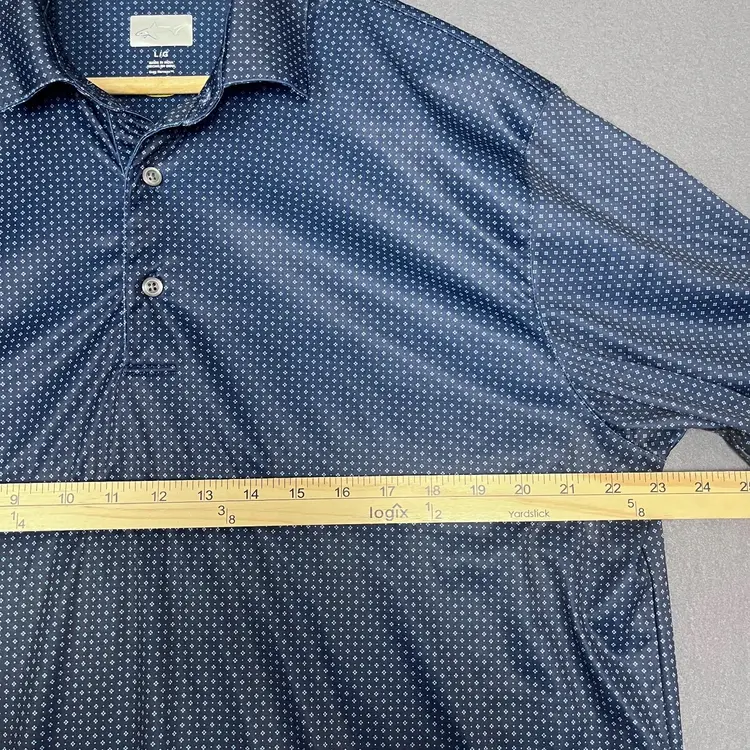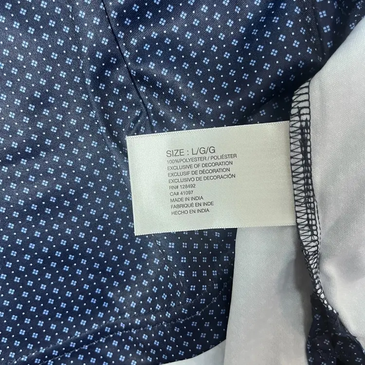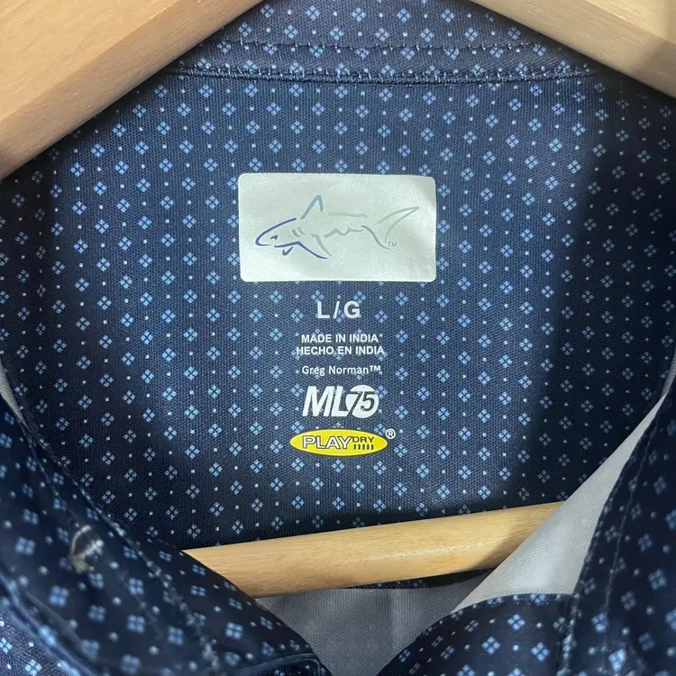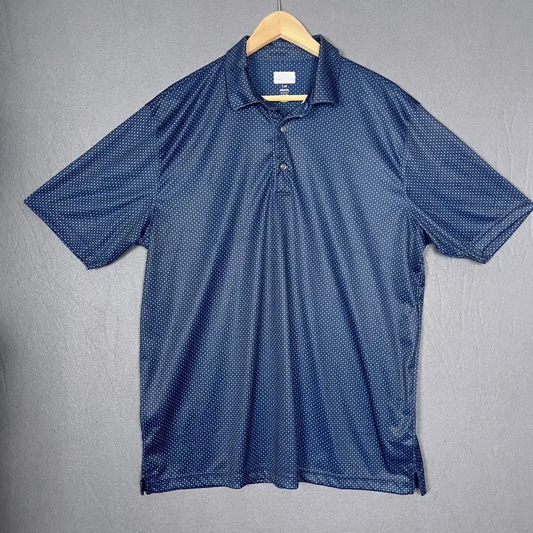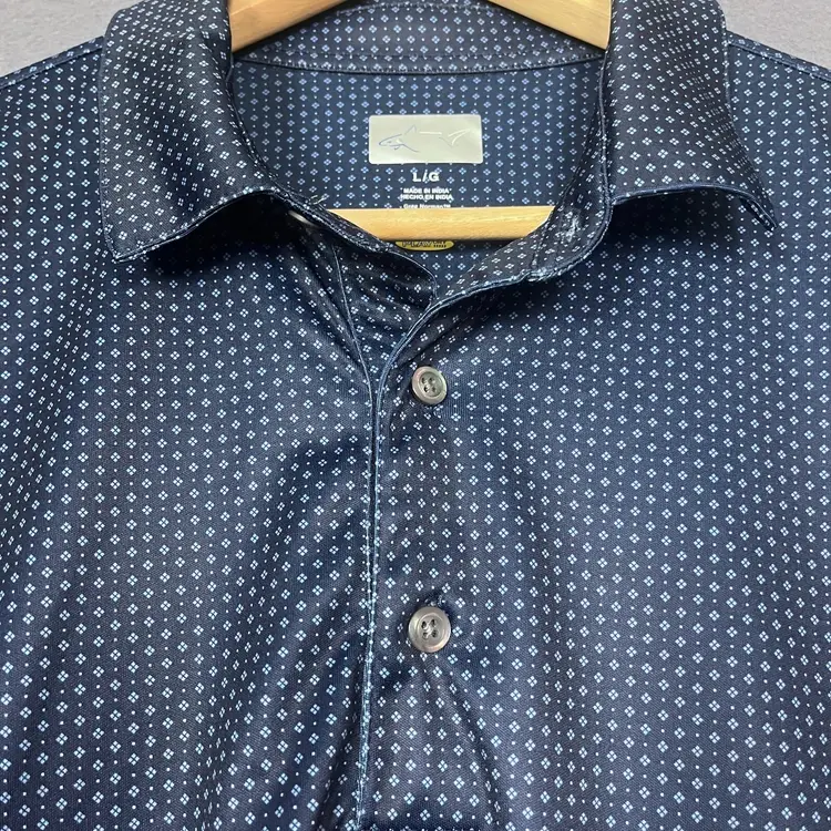 Greg Norman Polo Men's Large Navy Printed Play Dry ML75 Short Sleeve Golf Shirt Description