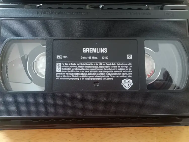Vintage Gremlins VHS tape (1984), presented by Steven Spielberg and directed by Joe Dante. Starring Zach Galligan, Phoebe Cates, and Hoyt Axton. This cult classic blends comedy, horror, and holiday vibes in a story about Gizmo the Mogwai and the terrifying gremlins that follow when the rules are broken. Runtime: 106 minutes. Rated PG. Released by Warner Bros. Home Video, with Dolby sound. Outer case shows some wear consistent with age, but tape is in good condition. Perfect for collectors of VHS tapes, Spielberg classics, or 80s horror-comedy films.