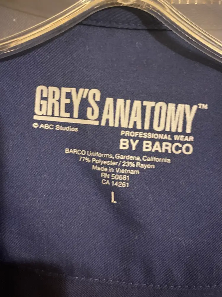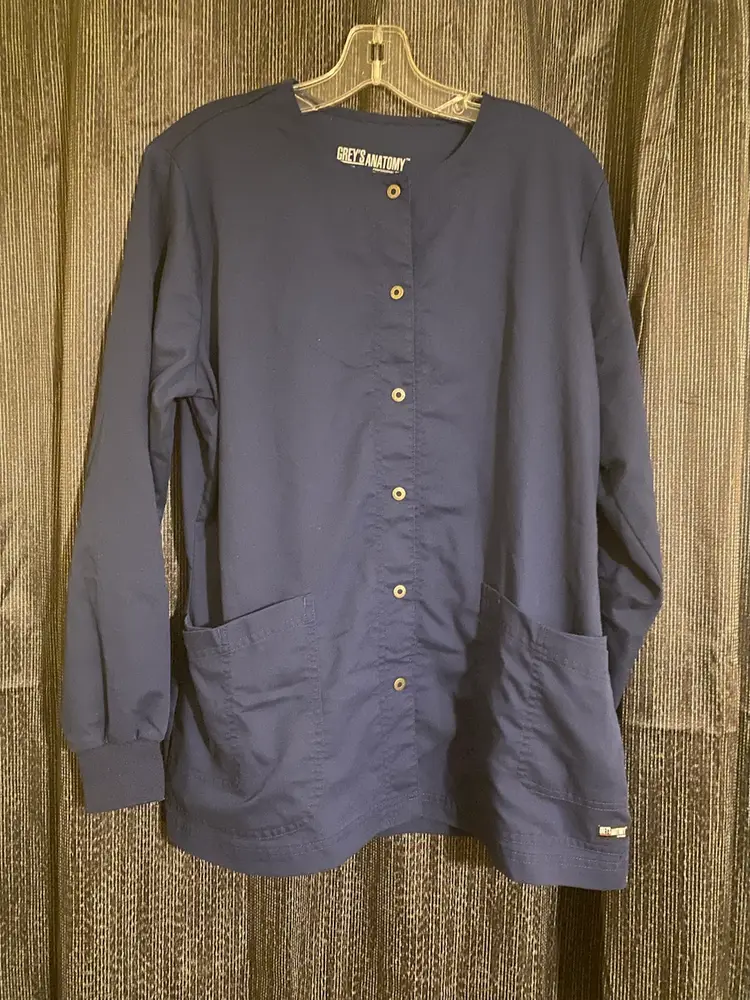 You are purchasing one Women's Size Large Navy Blue Long Sleeve Button-Up Scrubs Top by Barco and their Grey's Anatomy collection. This Top is in great condition with no rips, stains or holes.