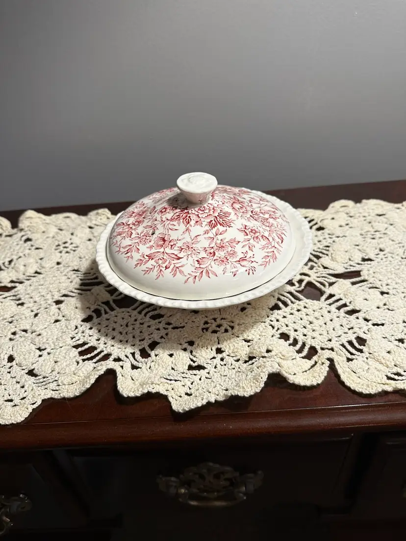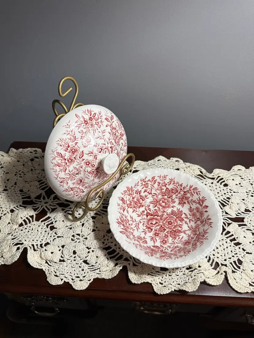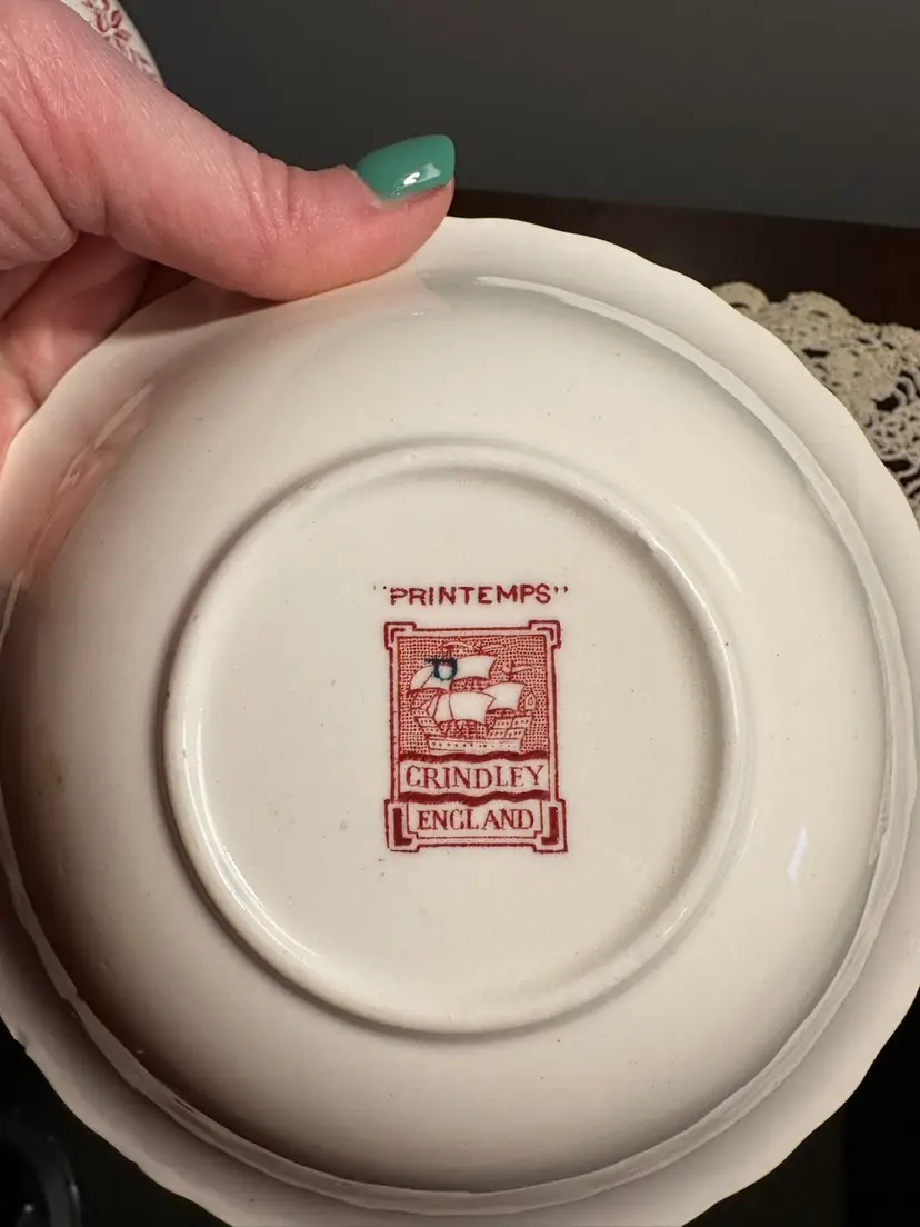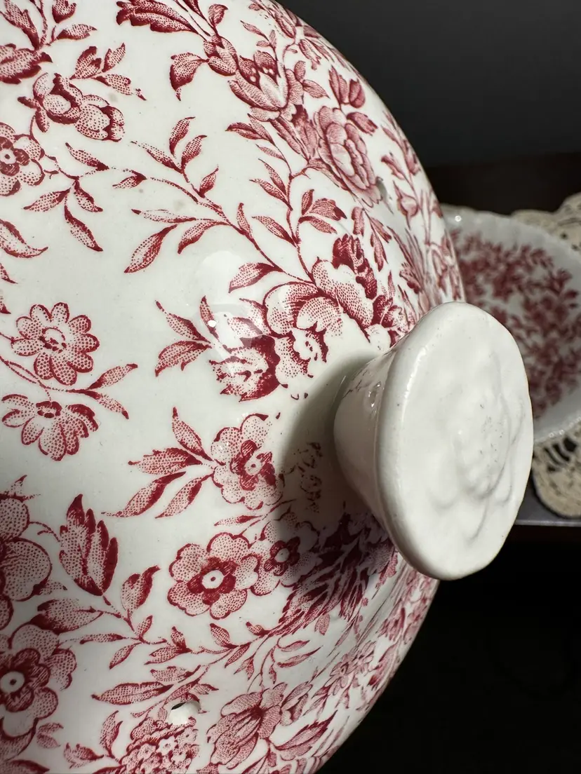 Printemps pink collection. Ironstone transferware. From 1940s. Made in Grindley England