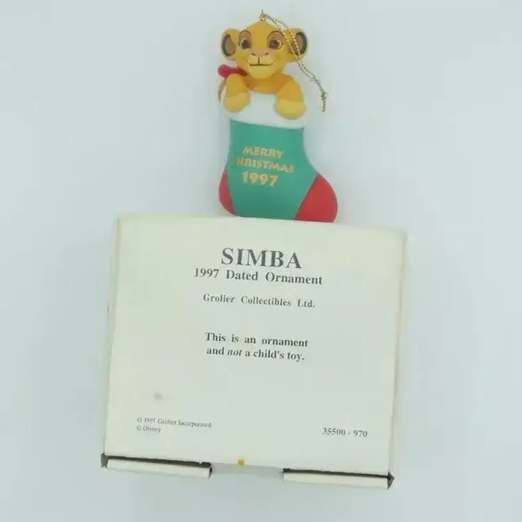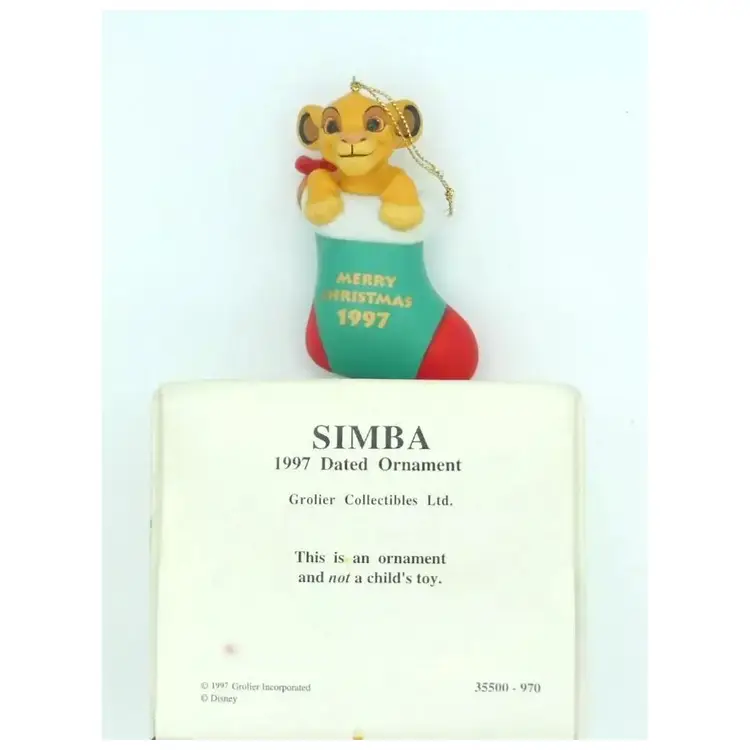 Grolier Disney Porcelain Lion King SIMBA Christmas Ornament 1997 w/Box, VTG. Measures approx: 3.25" High, 2" Wide Cond is GREAT, LIKE NEW IN BOX. Please see all pics, as they are part of the description.