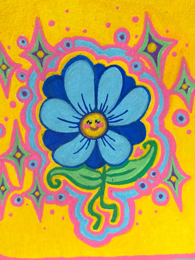 Approximately 5” x 5”. Posca acrylics paint pen on mixed media paper. Original piece made by me. :)