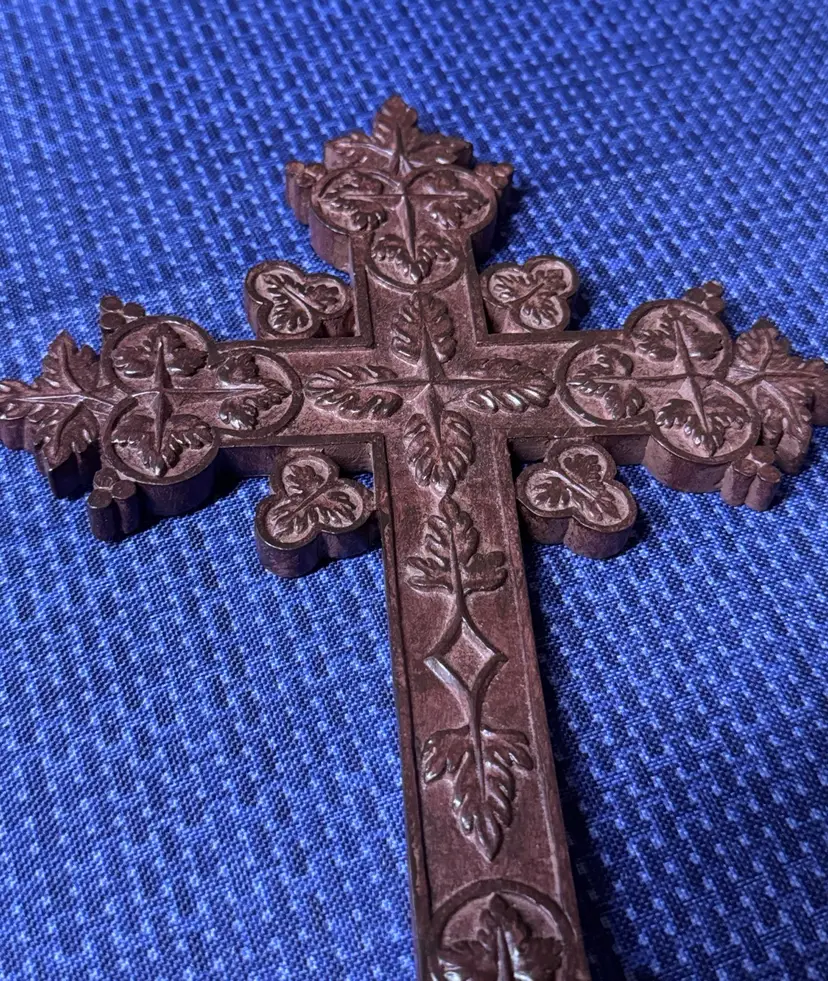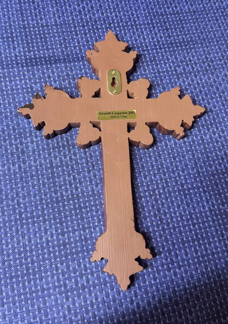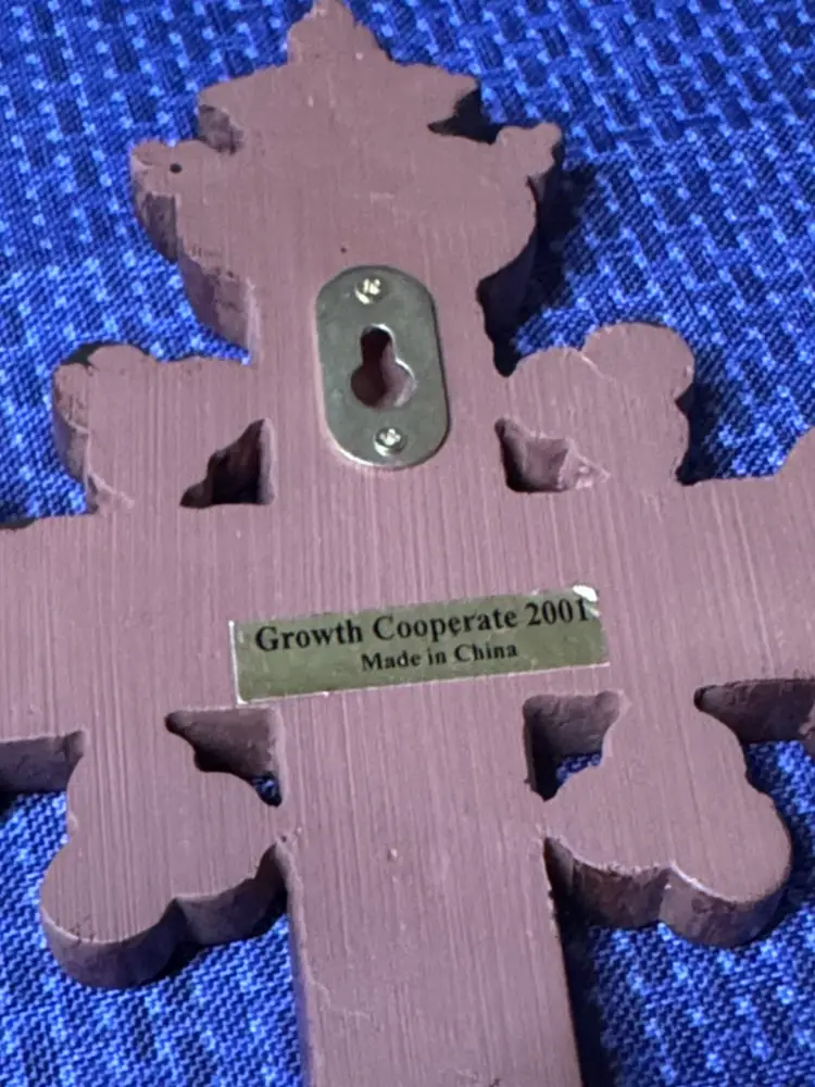 Beautifully detailed brown cross for wall decoration. Intricate design adds elegance to any space. Growth Cooperate Wall Hanging Cross Plaque 2001 Made In China Measures approximately 10.25 inches tall 7.25” wide I think it is carved wood and painted brown In excellent condition (11361020252)