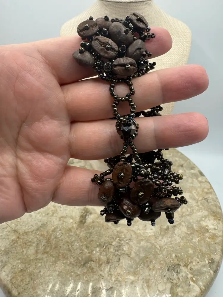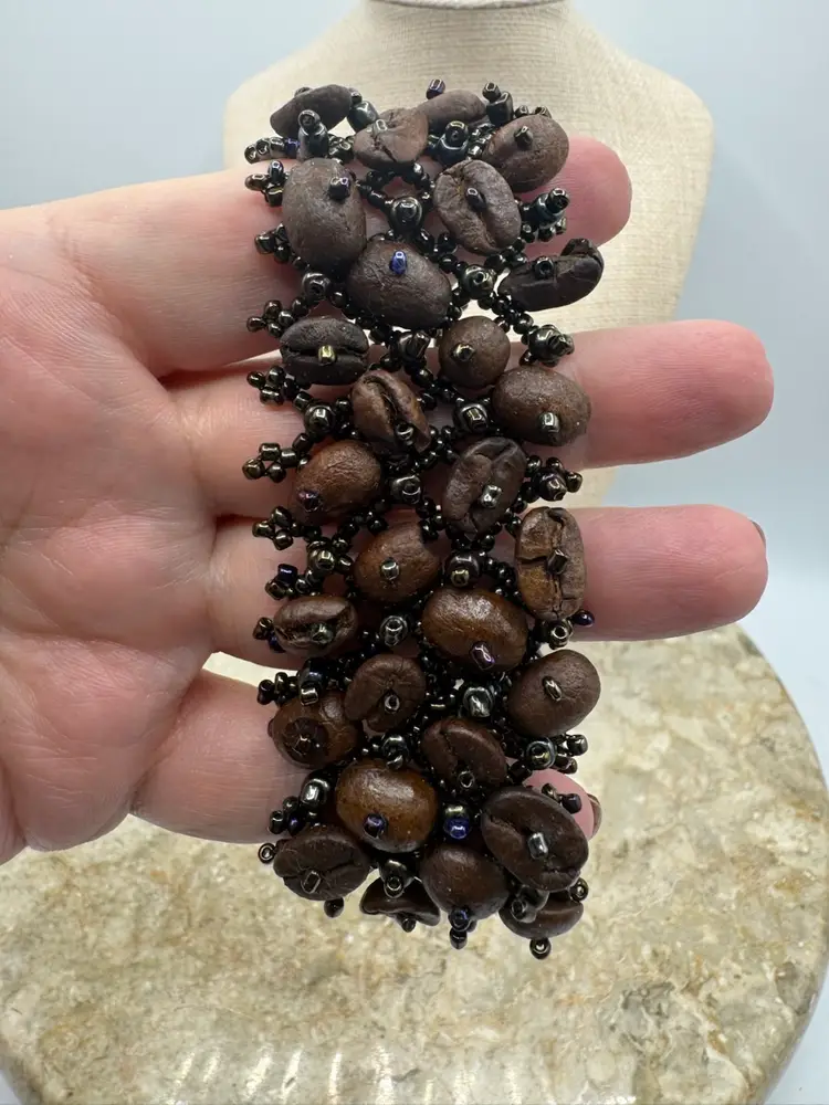 Guatemalan Coffee Bean & Glass Bracelet. Great condition. As shown on video.