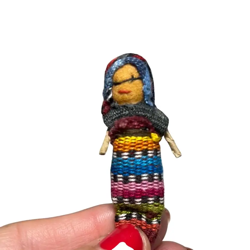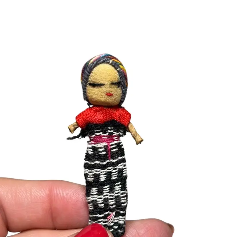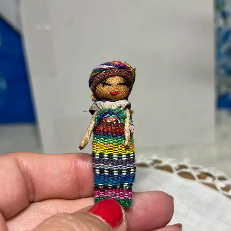 Made by the Highlands indigenous people. Mayan style. Worry dolls are to be placed under your pillow and upon awakening- troubles are solved.