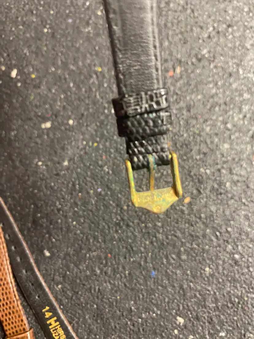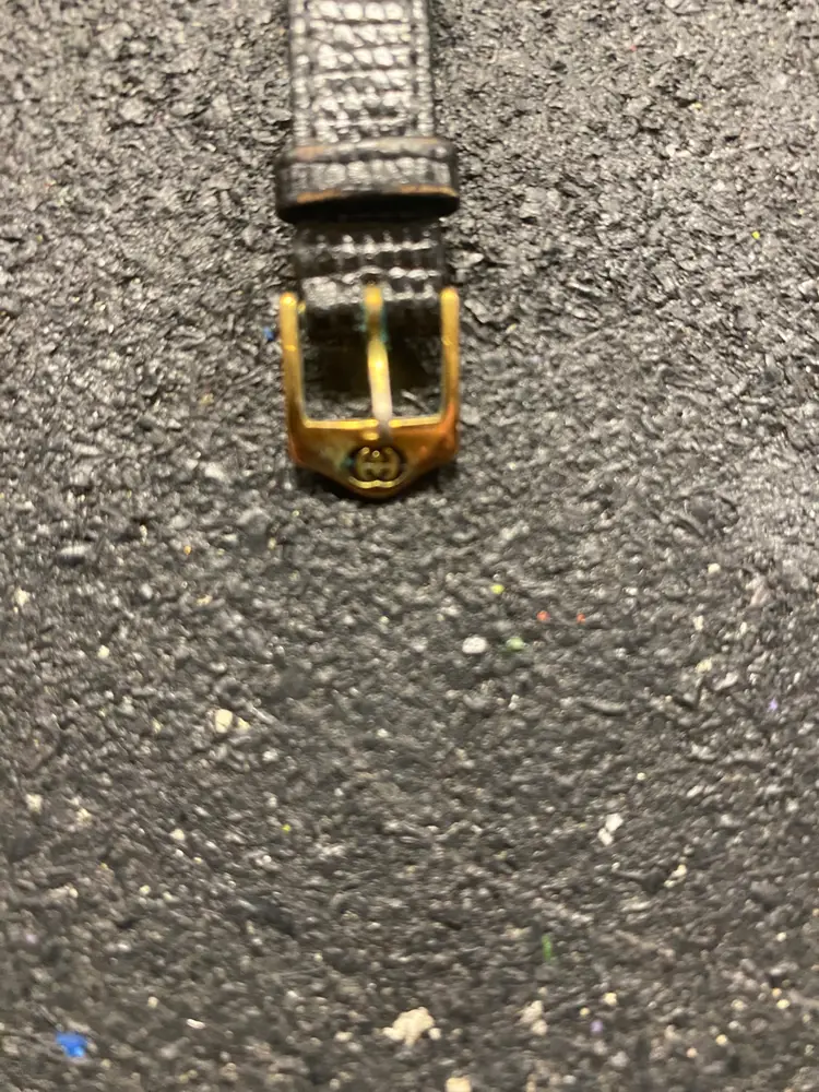 Gucci has wear on two bands with holes and on metal hardware it has green tarnish Gucci 3 1/8 band with buckle Short black hole band 3 7/8 long black Gucci band 4 1/8 Hirsch band with buckle 3 and band with hole4 1/4 and they look never worn