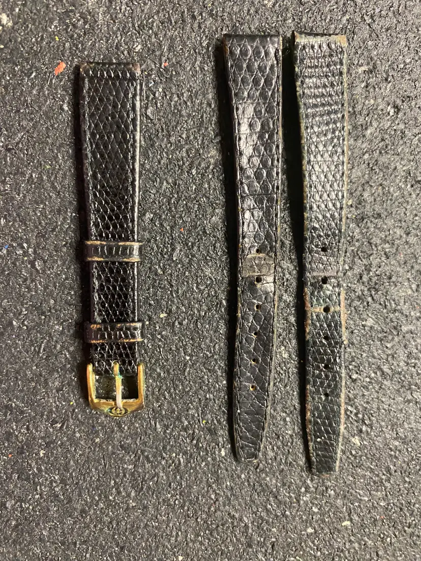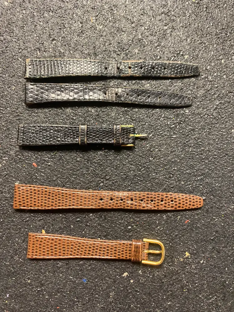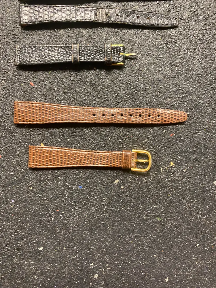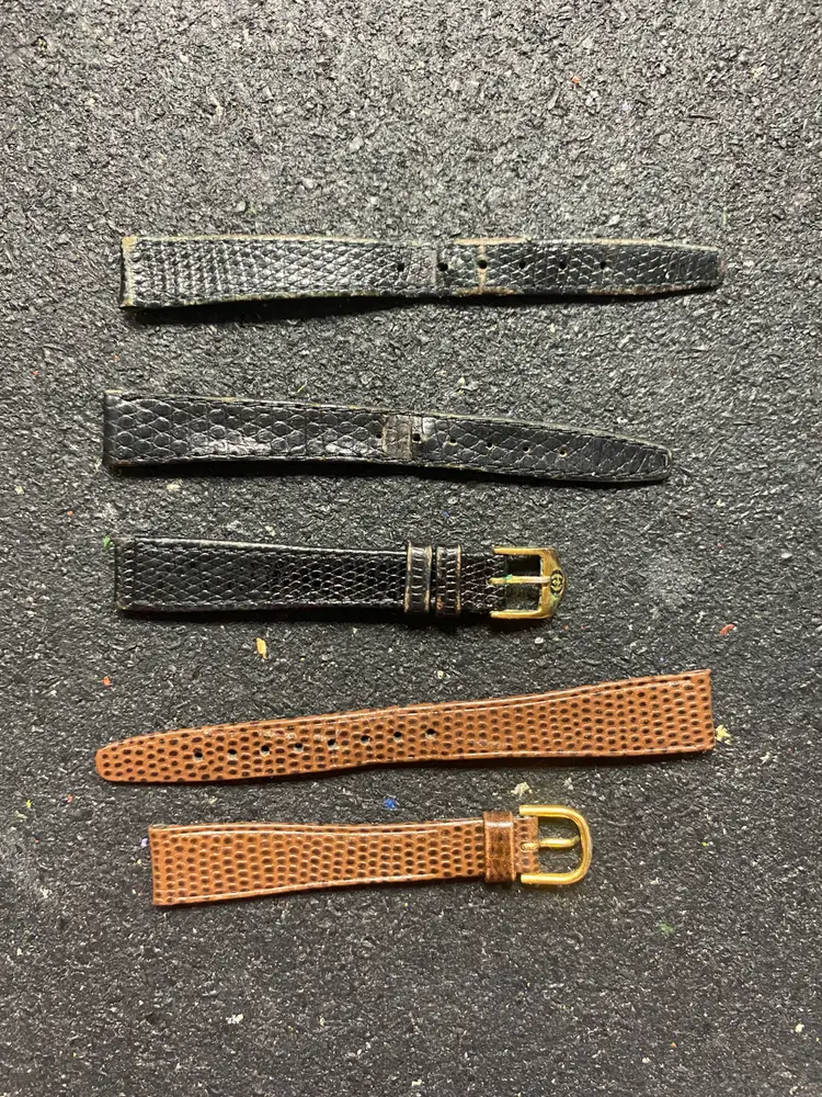 Black snake or lizard skin Gucci 1 1/2 sets bands and one set brown lizard grain hirsch