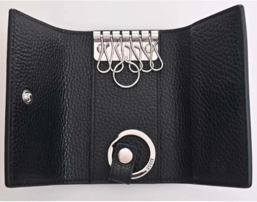 Gucci Six Row Keyholder Case LOGO Plain Black Leather Unisex Wallet Condition: New in box GUCCI key case has arrived. High quality leather with a luxurious design. Features 6 key hooks and 1 key ring. The large key hook in the center allows you to use it everyday for home keys and more. With its simple design that you will never get tired of, this 6-key case will be able to use it for a long time. Features: