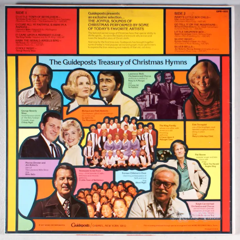 Treasury of Christmas Hymns, by Guideposts, is a collection of classic Christmas songs including O Little Town Of Bethlehem, Silent Night, It Came Upon A Midnight Clear, and Little Drummer Boy among others.