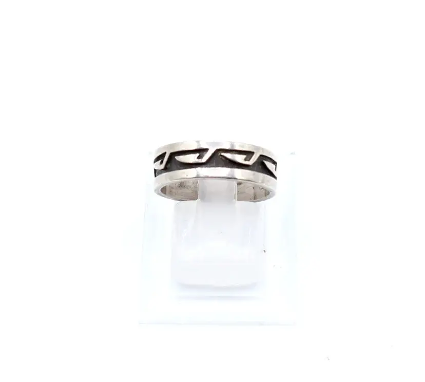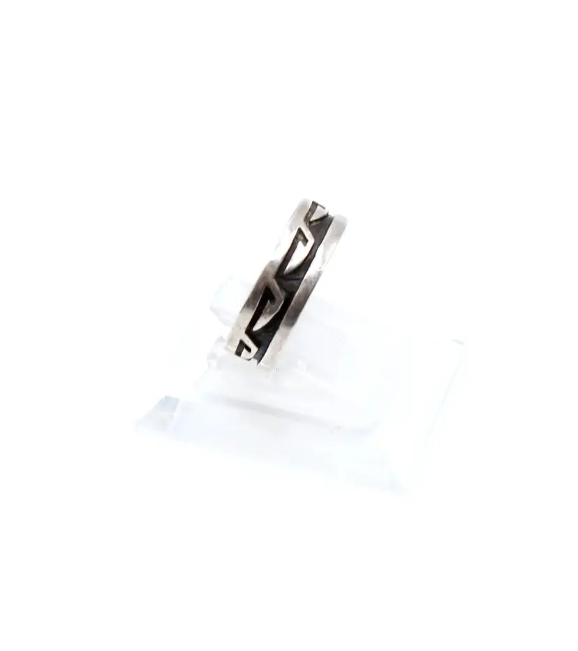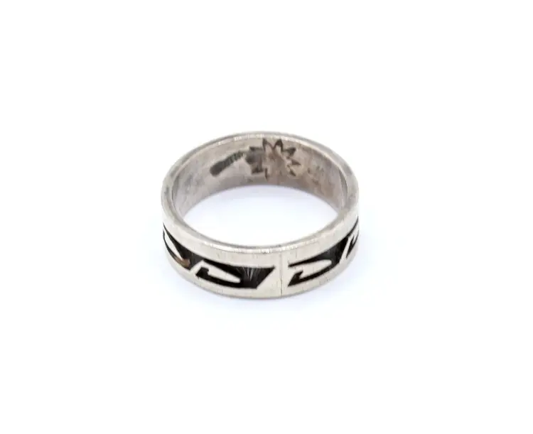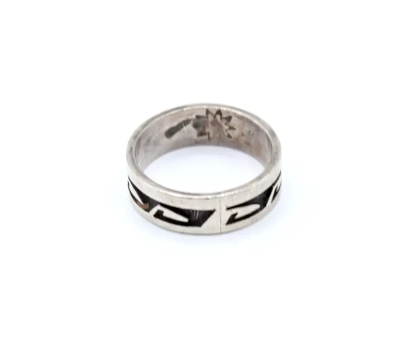 Fantastic Hopi overlay southwestern design. Guy active since 1980, band stamped with snowflake pictograph. Band width 6.51 mm.