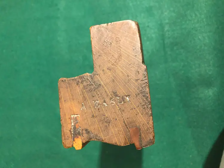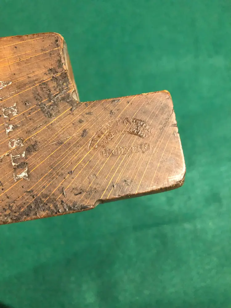 This item is referred to as a complex molding plane due to the complex shape that it cuts. Manufactured between 1828 and 1860 by Hermon Chapin at his Union Factory in New Haven CT. The plane is boxed with two slips of boxwood at the areas of highest potential wear. The plane is 9 ½” long and 2 3/8” wide and is in good shape.