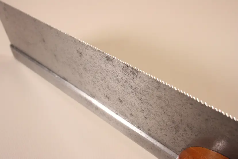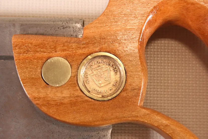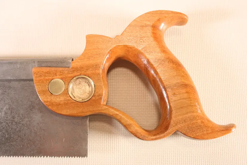 Hand sharpened Rip with 10º rake. 2 1/4" depth under the back, .024" thick saw plate. New custom made Cherry handle. Split nuts, Medallion screw has been repaired.
