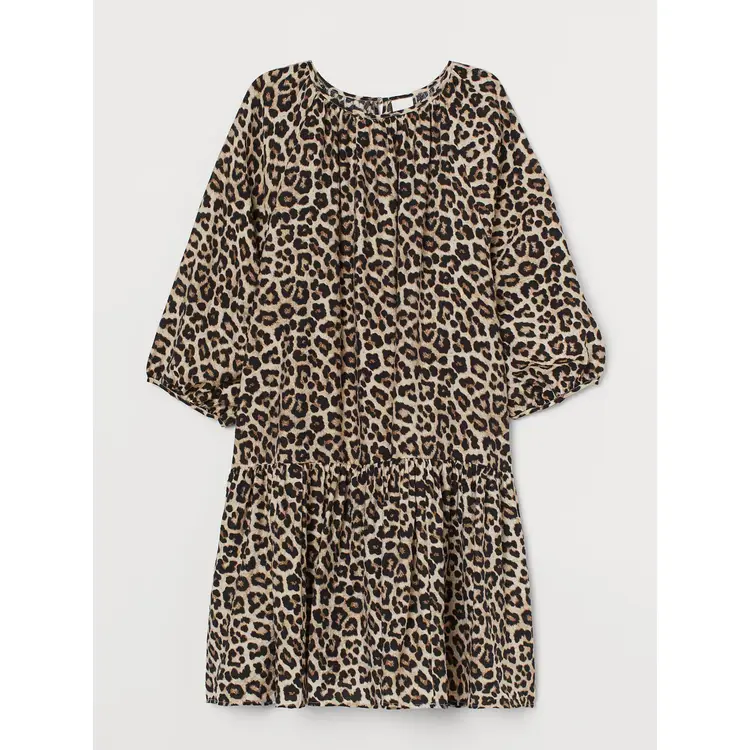 Leopard Dress Printed Long-sleeve Tiered Casual Daywear Weekend Brunch Whimsygoth Bohemian Retro Boho lagenlook favorite closet staple cute adorable