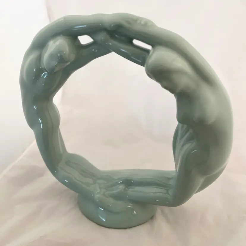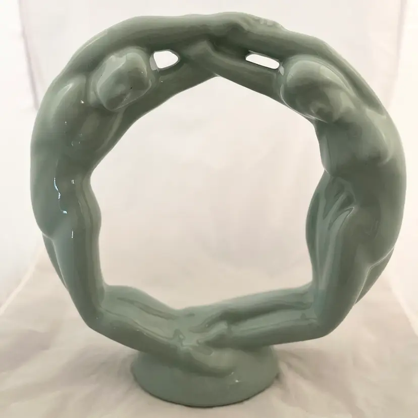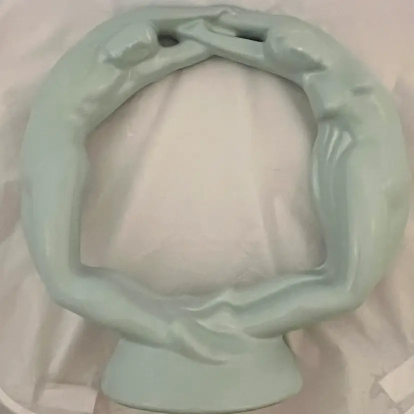Gorgeous Haeger Pottery sculpture. Art Nouveau style, beautiful pale turquoise color. It is in amazing condition and is absolutely beautiful.