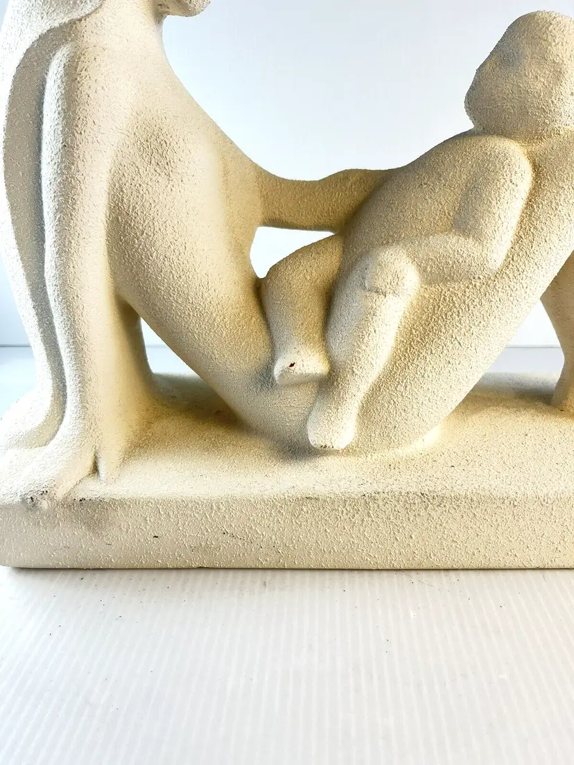 This listing is for a beautiful art deco Haeger production, Mother and Child. Is is white and has a textured finish. It is in great condition but in full transparency it does have some light shelf wear on the front, which is pictured for your review.