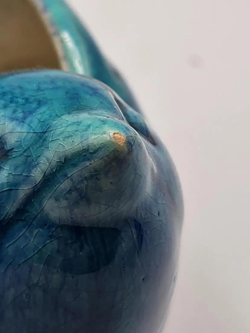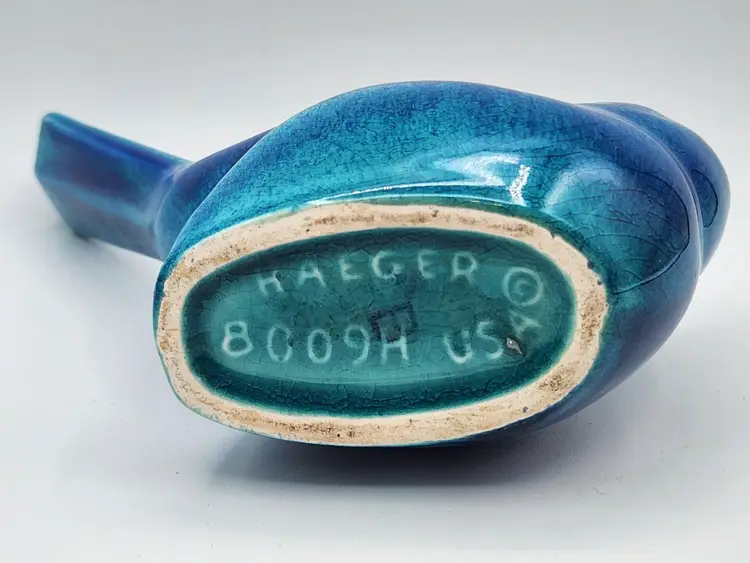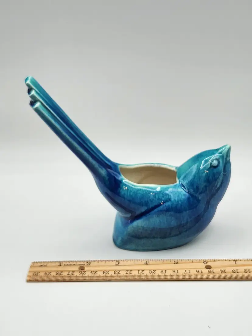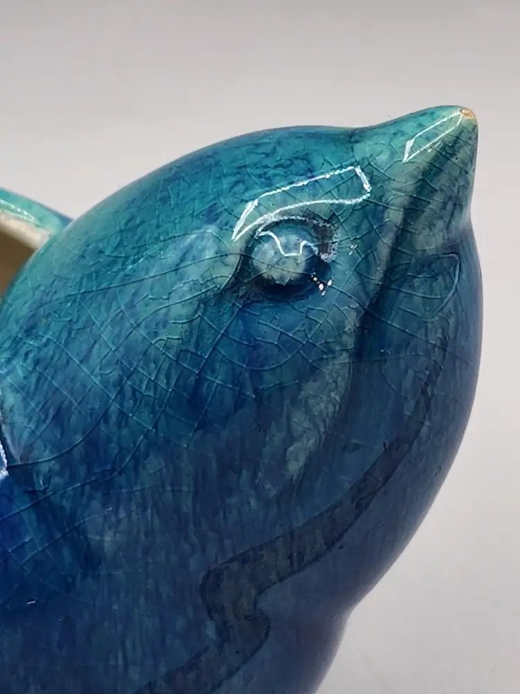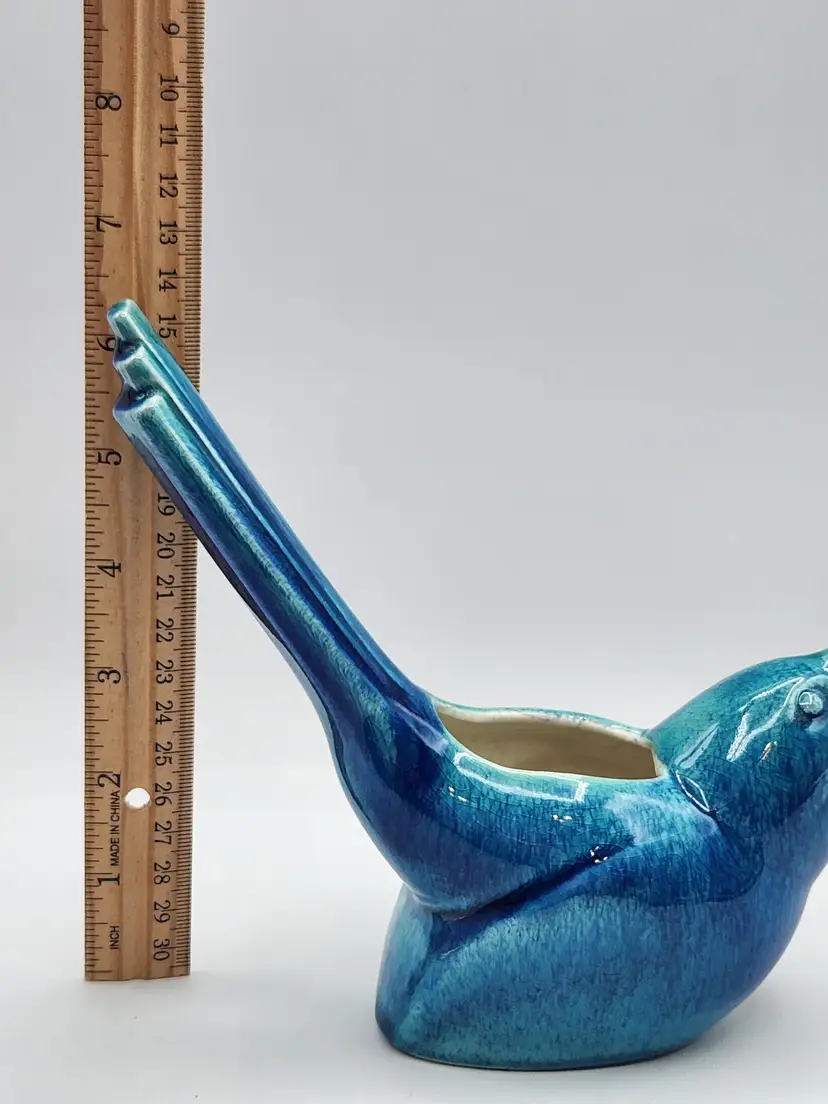 6.25 inches tall at the tail. Small glaze chip on the beak, barely noticeable.