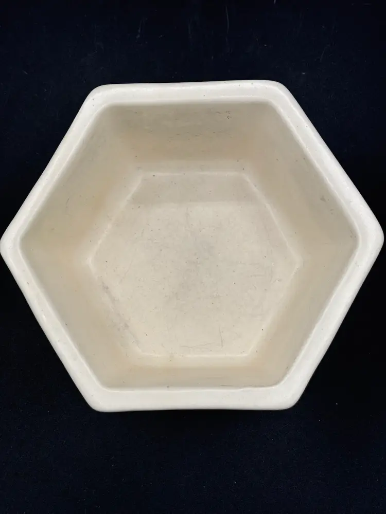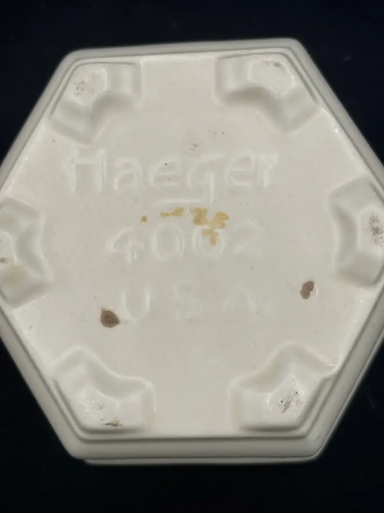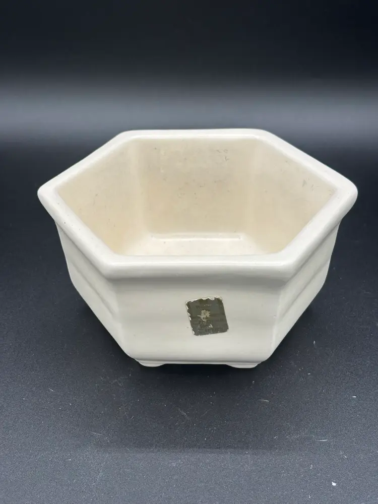 Haeger white hexagon vintage planter 5” diameter (gold sticker)
