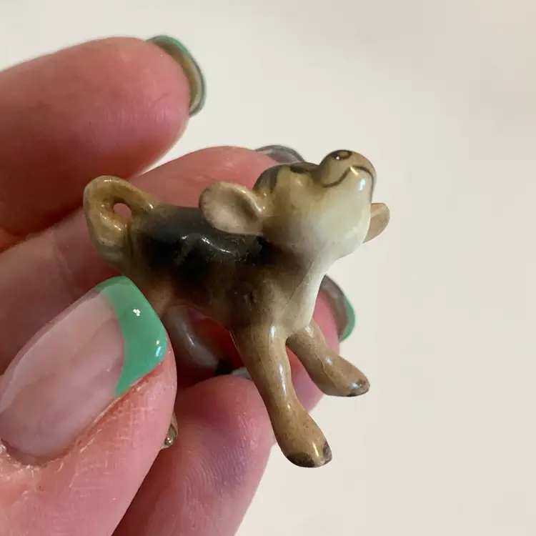 This is just darling!! No chips or cracks. Measures 1 1/8 inches across, 3/4 inches wide and 1 inch tall. Weighs 1 ounce.