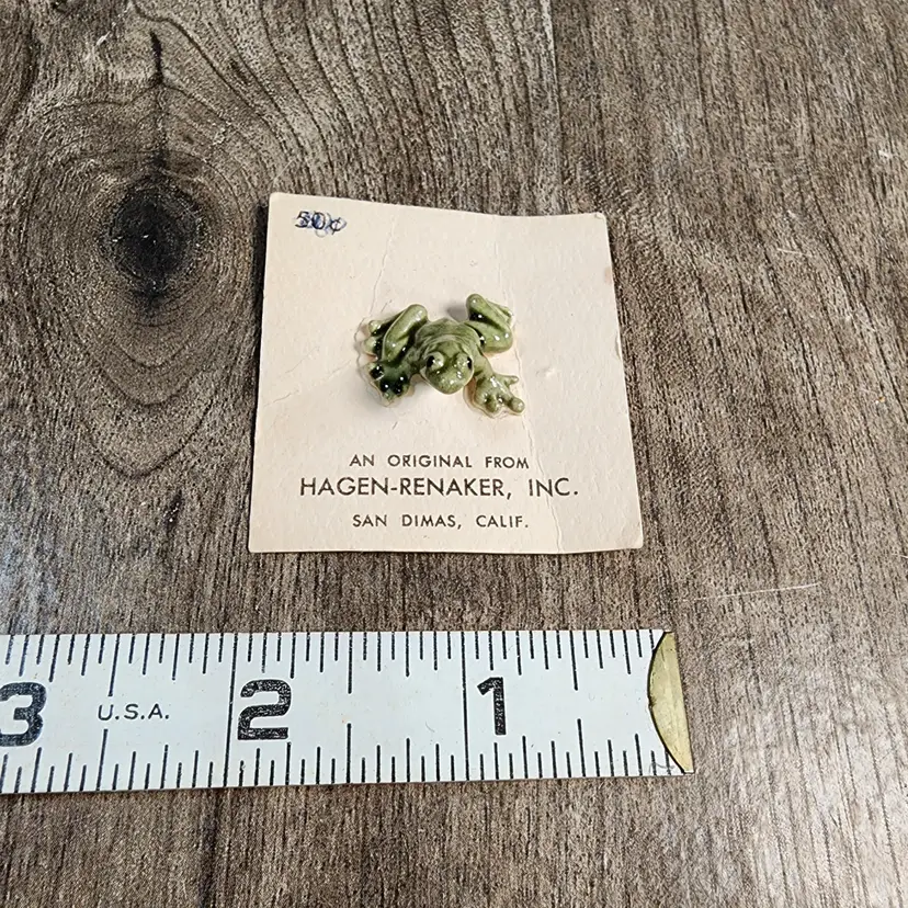 Tiny little frog is still on his original paper. The paper he's on measures 2" x 2". No damage on the froggy. Paper is a just a little creased.
