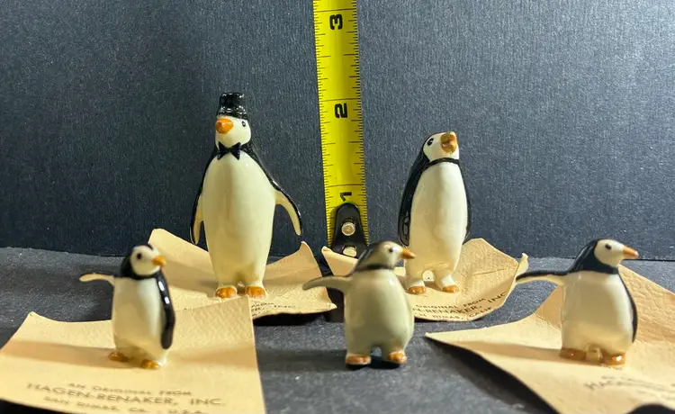 Cute lot of Hagen-Renaker penguins. 5 total with 4 on original paper. Used condition no breaks or repairs