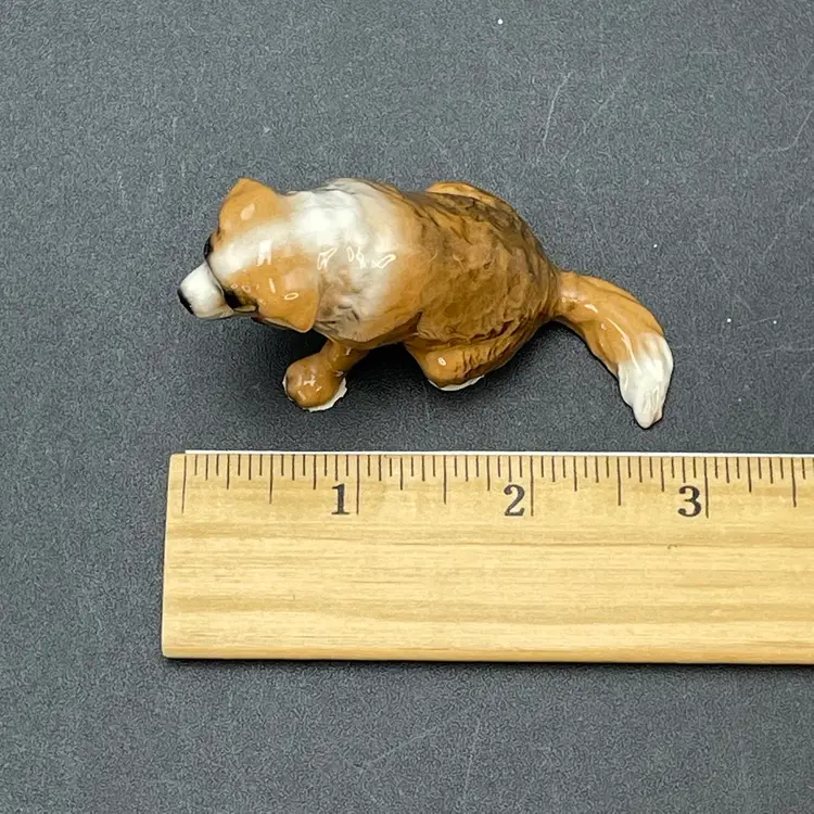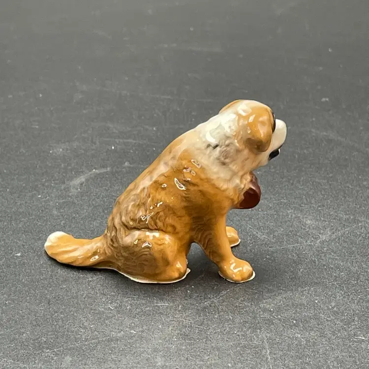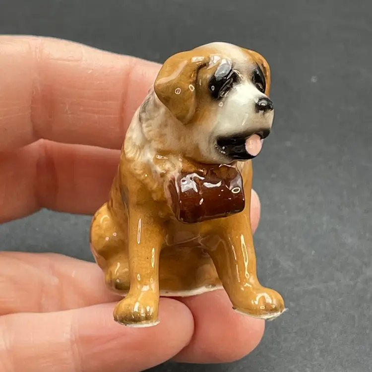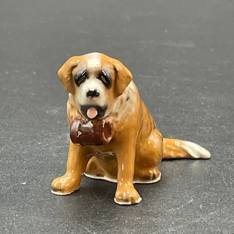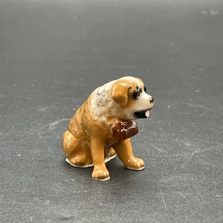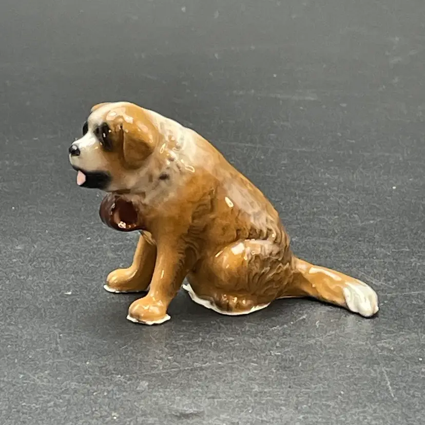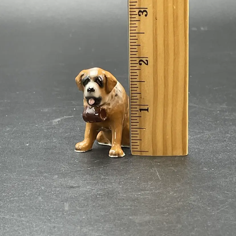 This is a vintage retired Hagen Renaker St. Bernard dog with rescue barrel miniature figurine. Measures approximately 2" tall x 2.75" long. No chips or cracks.