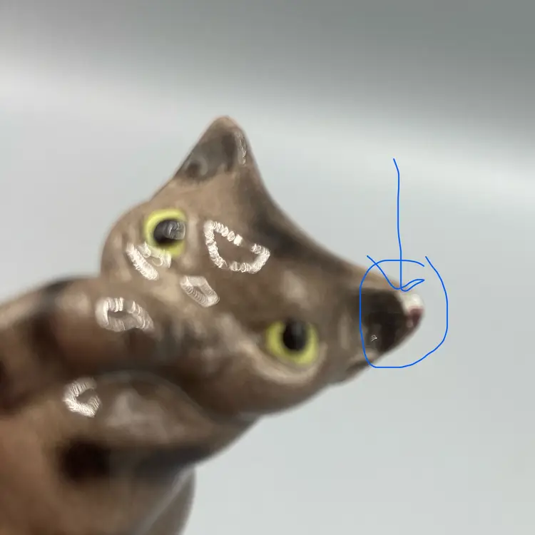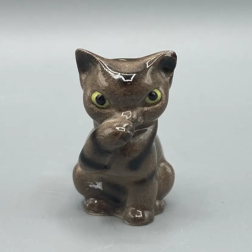 This cat is in good overall condition, with just one small chip on the tip of one ear. It measures 1 1/4" tall x 3/4" wide x 1 1/2" deep.