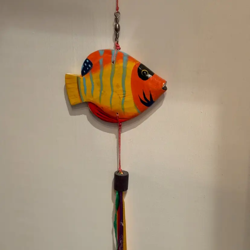 This fun little wind "flutter" was brought back from one of my trips to Haiti in the 90s. The ribbons hang about 3 feet.