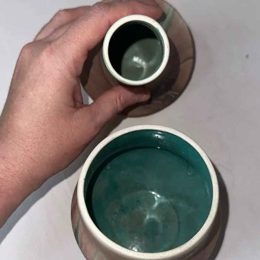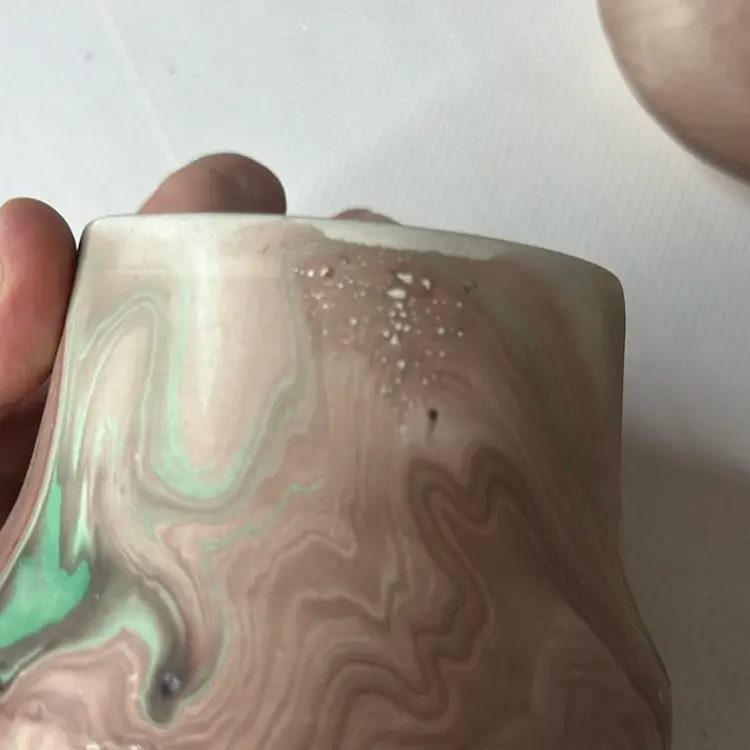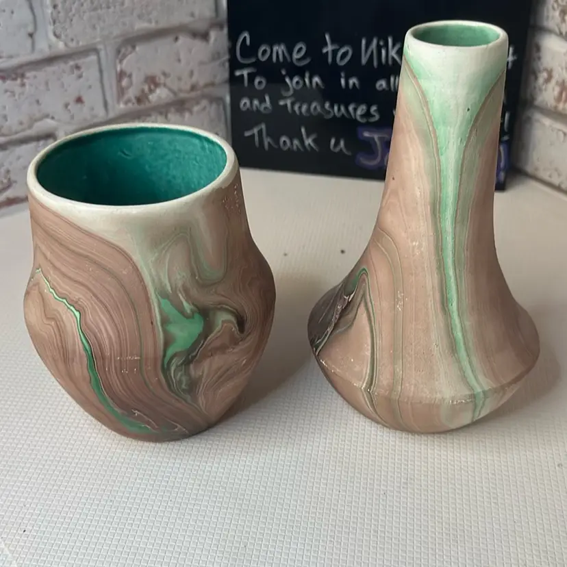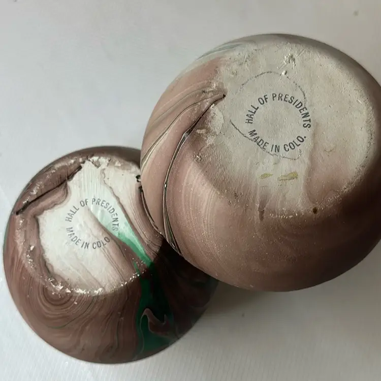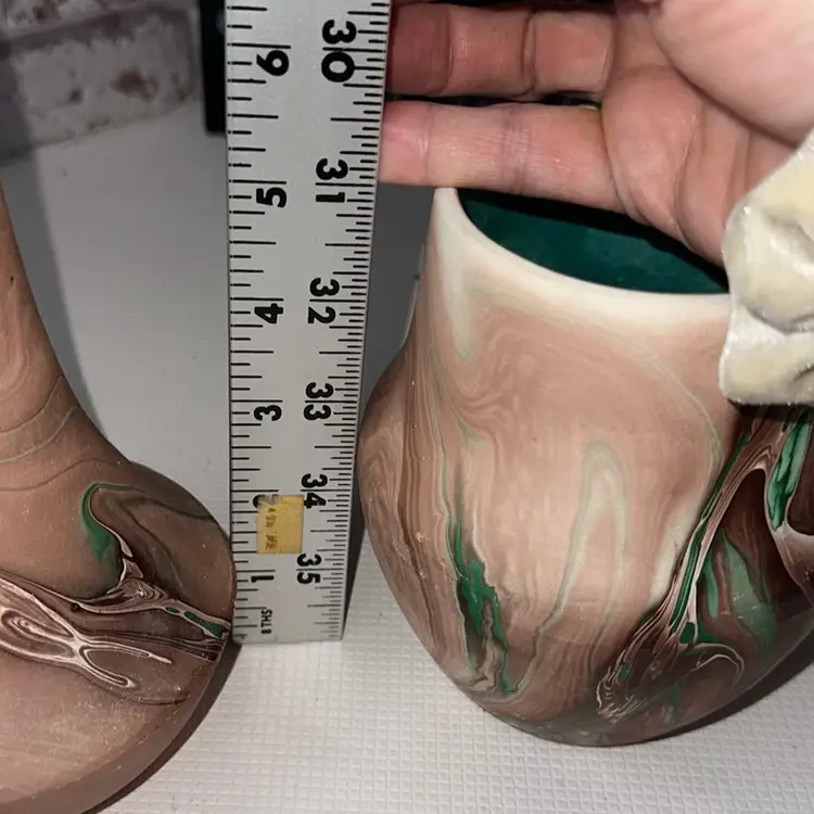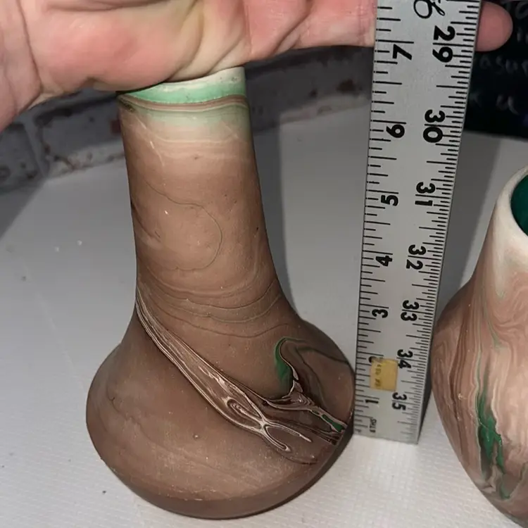 As is some paint loss and white dots on it it is a factor flaw one measures 7” and the smaller one is 5” tall