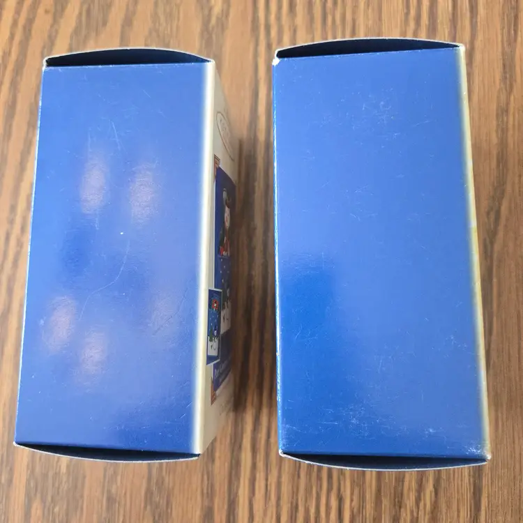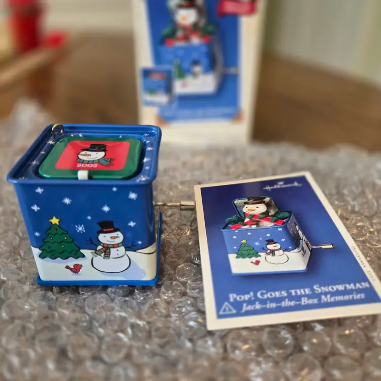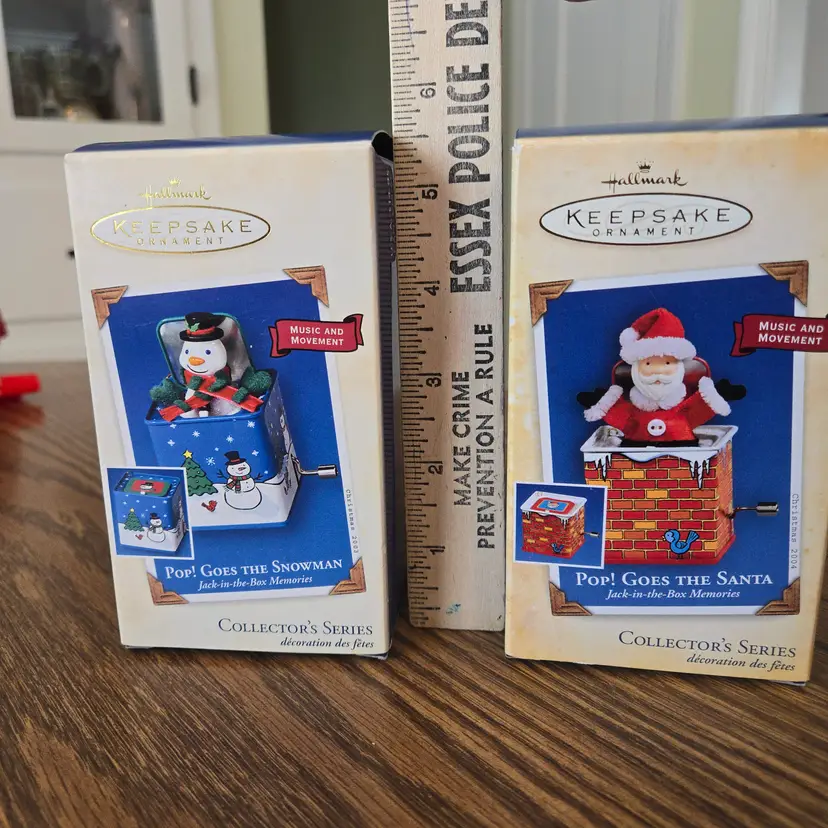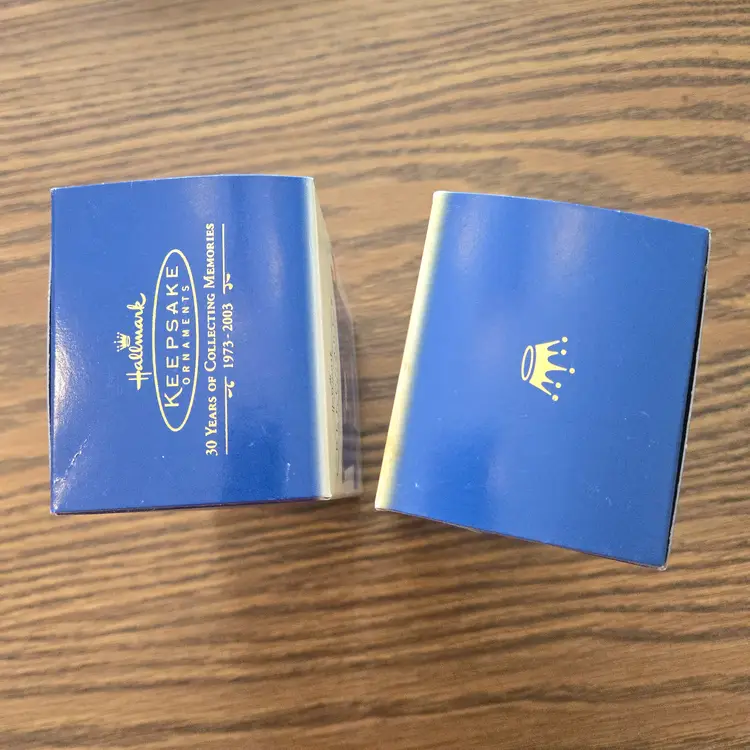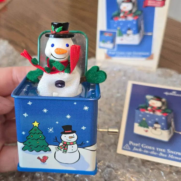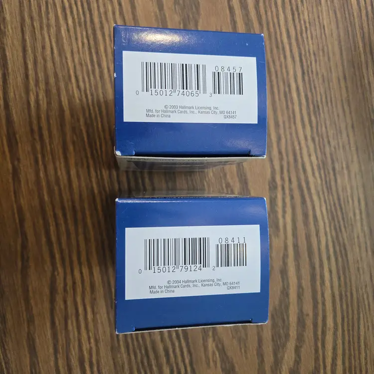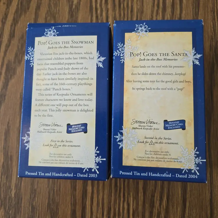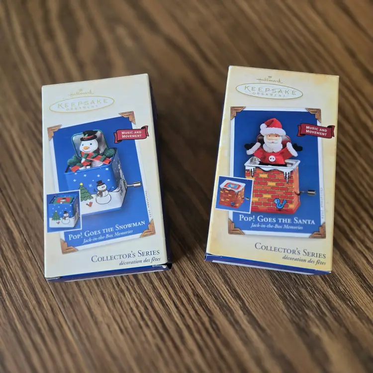 I bought these ornaments years ago and never gifted them or used them. They've been stored away in a tub since I purchased them. They are in the original boxes and packaging. I opened them to take pictures and to take the videos to make sure they work. They both have the original, unused "memory cards" inside the box. Both are in unused condition, the music works and they both pop up. I hope the videos work! If they don't please message me!