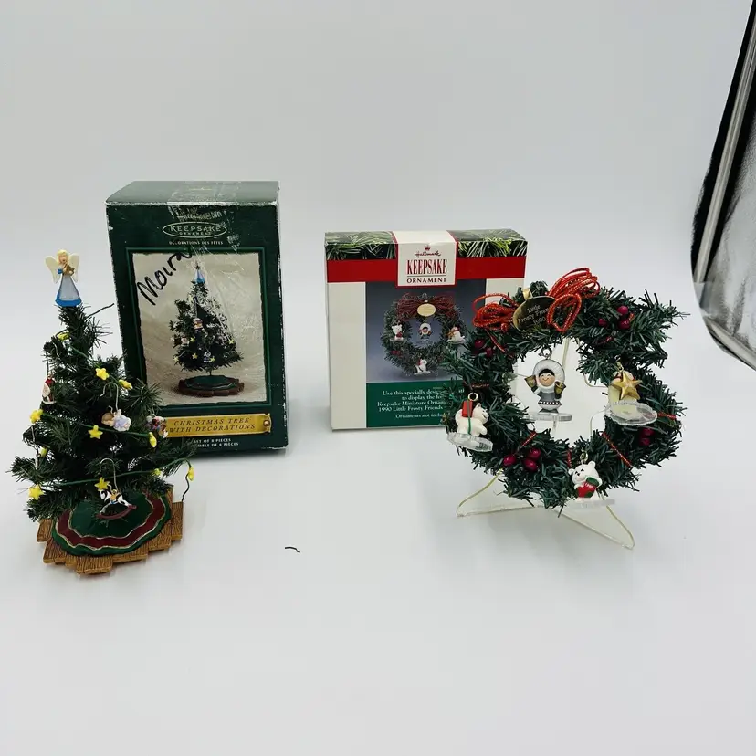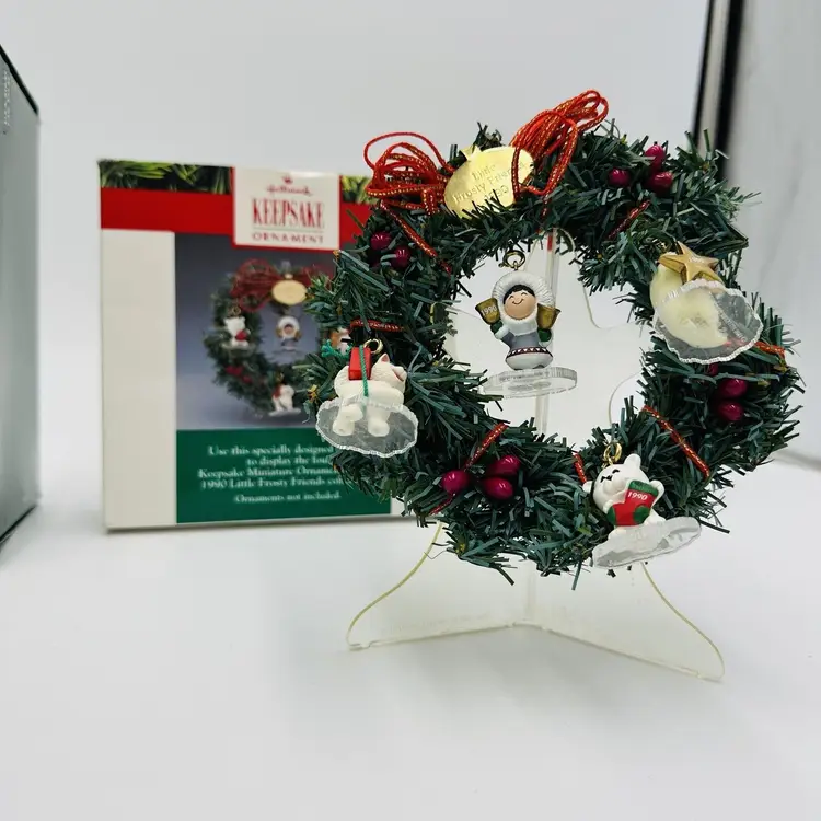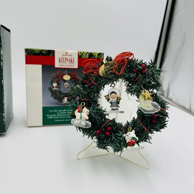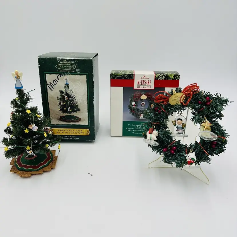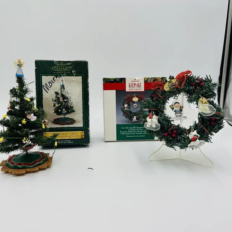 Number of Items: 2 Custom Bundle: Yes Department: Adult Age Level: Over 18 Years Item Width: 2 in Pattern: Snow Production Technique: Pottery Item Length: 3 in Item Height: 5 in Subject: Wreath Collection: Frosty Friends Occasion: Christmas Vintage: Yes Size: Small Material: Mixed Materials Shape: Round Character: Christmas Season Recipient: Friend Franchise: Hallmark Brand: Hallmark Color: Multicolor Set Includes: Mini Christmas Tree And Wreath, Tree Original/Licensed Reproduction: Original Theme: Christmas Type: Ornament