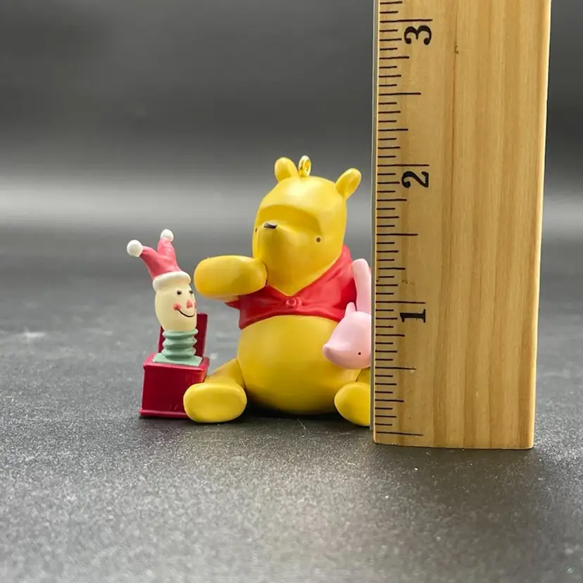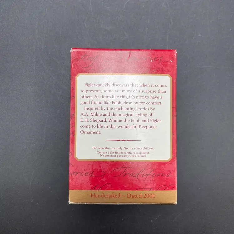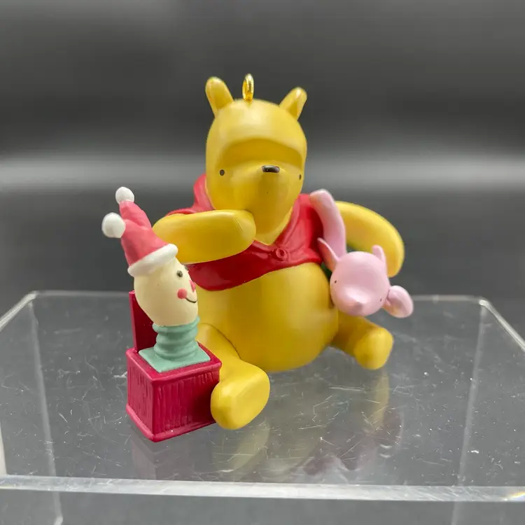 This is a vintage 2000 Hallmark Keepsake Classic Pooh Collection Piglet's Jack in the Box hanging ornament in its original box. Measures approximately 2" tall x 2" long. No major flaws.