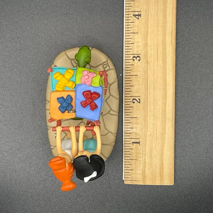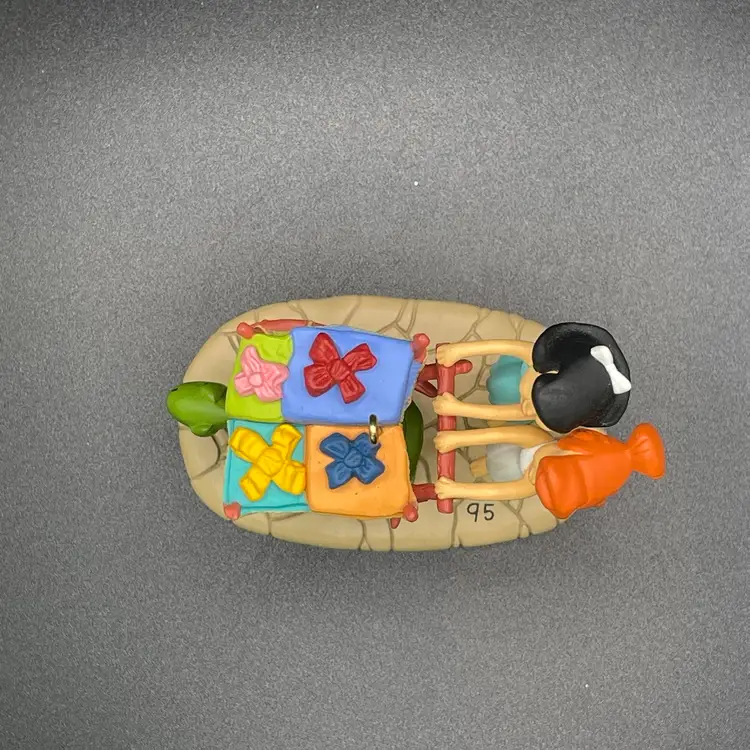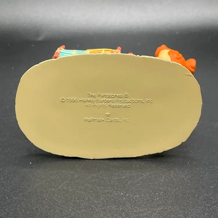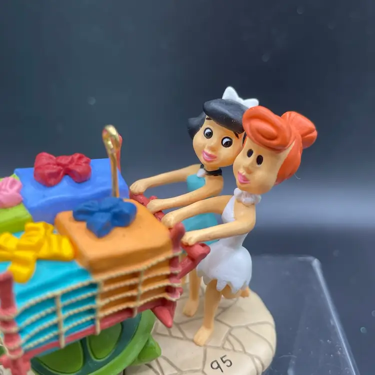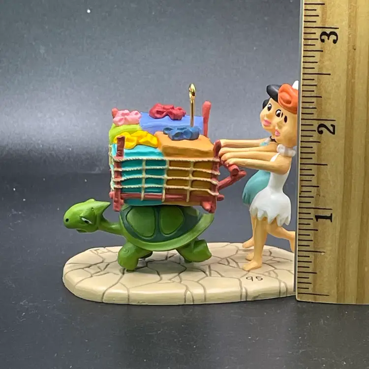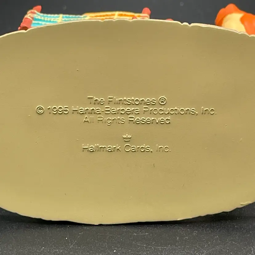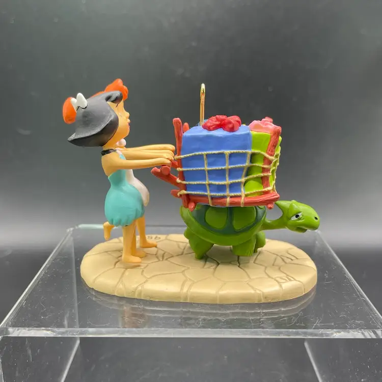 This is a vintage 1995 Hallmark Flintstones Betty and Wilma hanging ornament in its original packaging. Measures approximately 2.5" tall x 3" long. No major flaws.