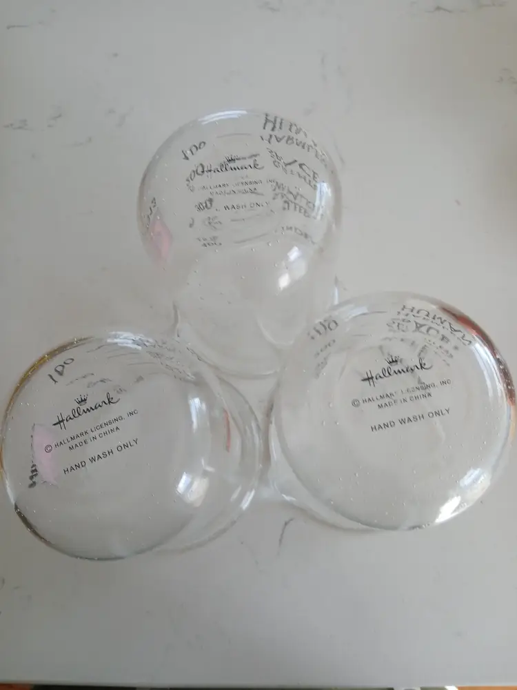 Paint on pumpkins and measurements in great condition.On the bottom of each glass the sticker from Hallmark is still attached.