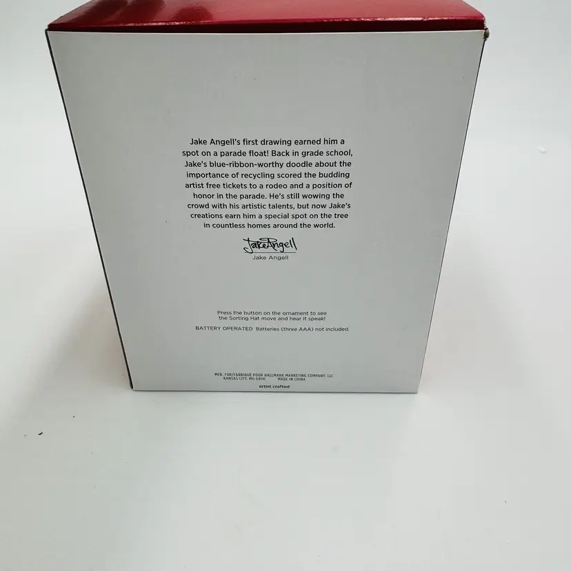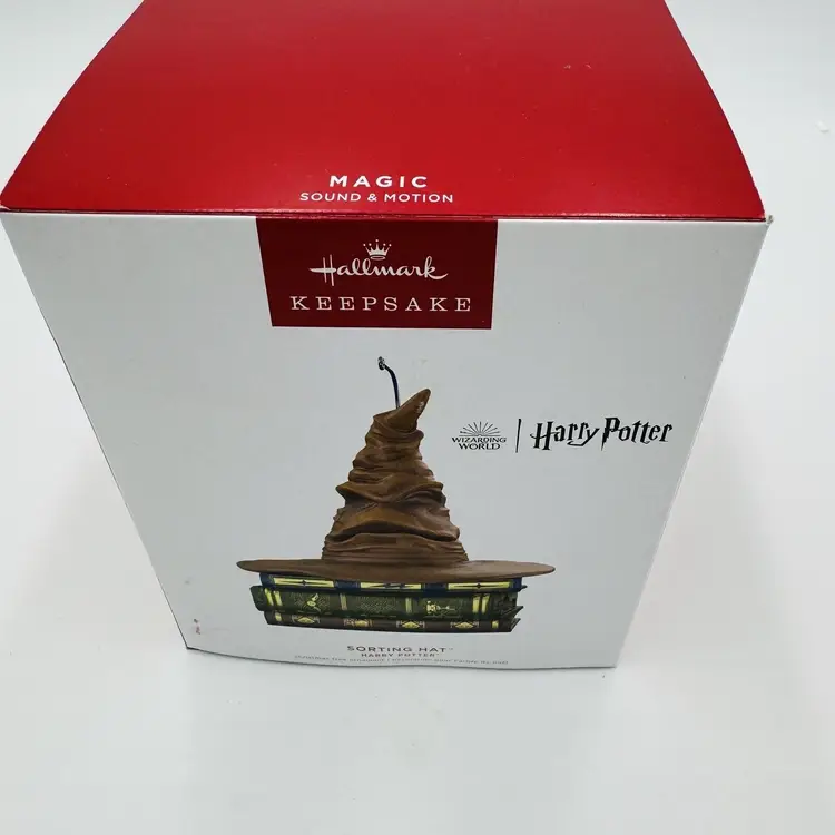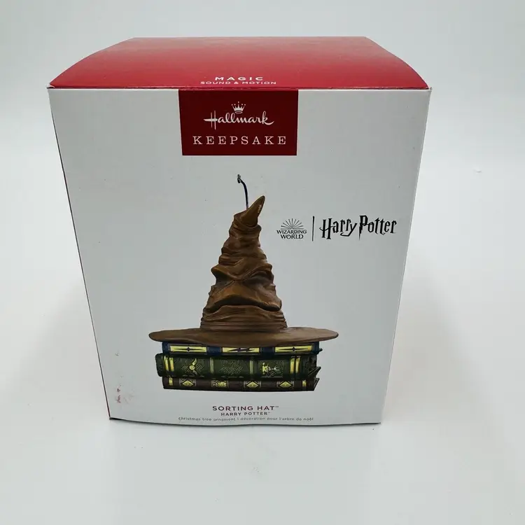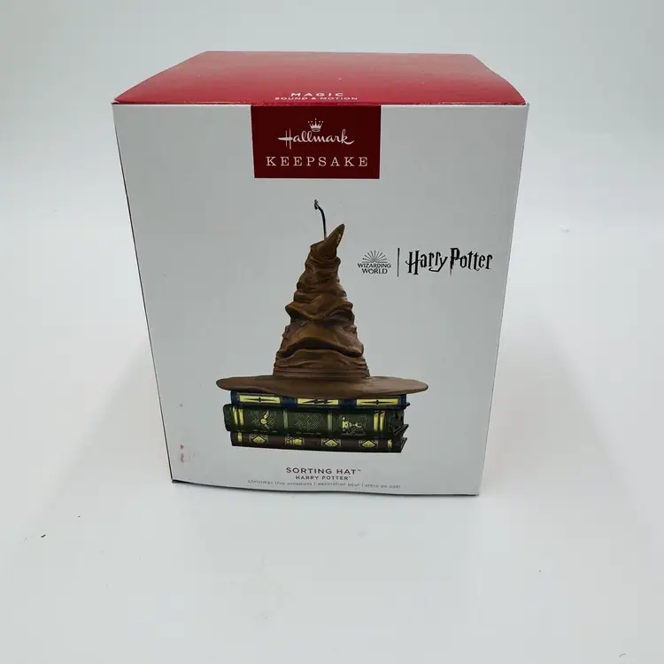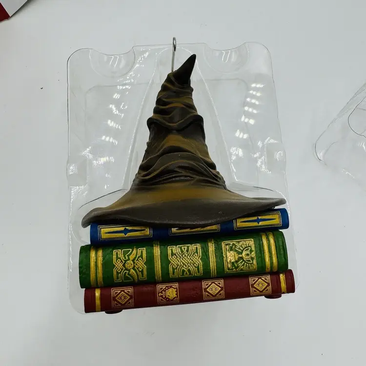 Features: Hanging, Animated Number of Items: 1 Department: Adult Pattern: No Pattern Item Length: 6 in Item Height: 6 in Subject: Fantasy Figure Collection: Ornaments Occasion: Christmas Vintage: No Size: Medium Country/Region of Manufacture: China Material: Mixed Materials Year Manufactured: 2021 Shape: Pointed Hat Character: Sorting Hat Franchise: Harry Potter Brand: Hallmark Antique: No Color: Brown Set Includes: Hat Original/Licensed Reproduction: Original Theme: Witches & Wizards Type: Ornament
