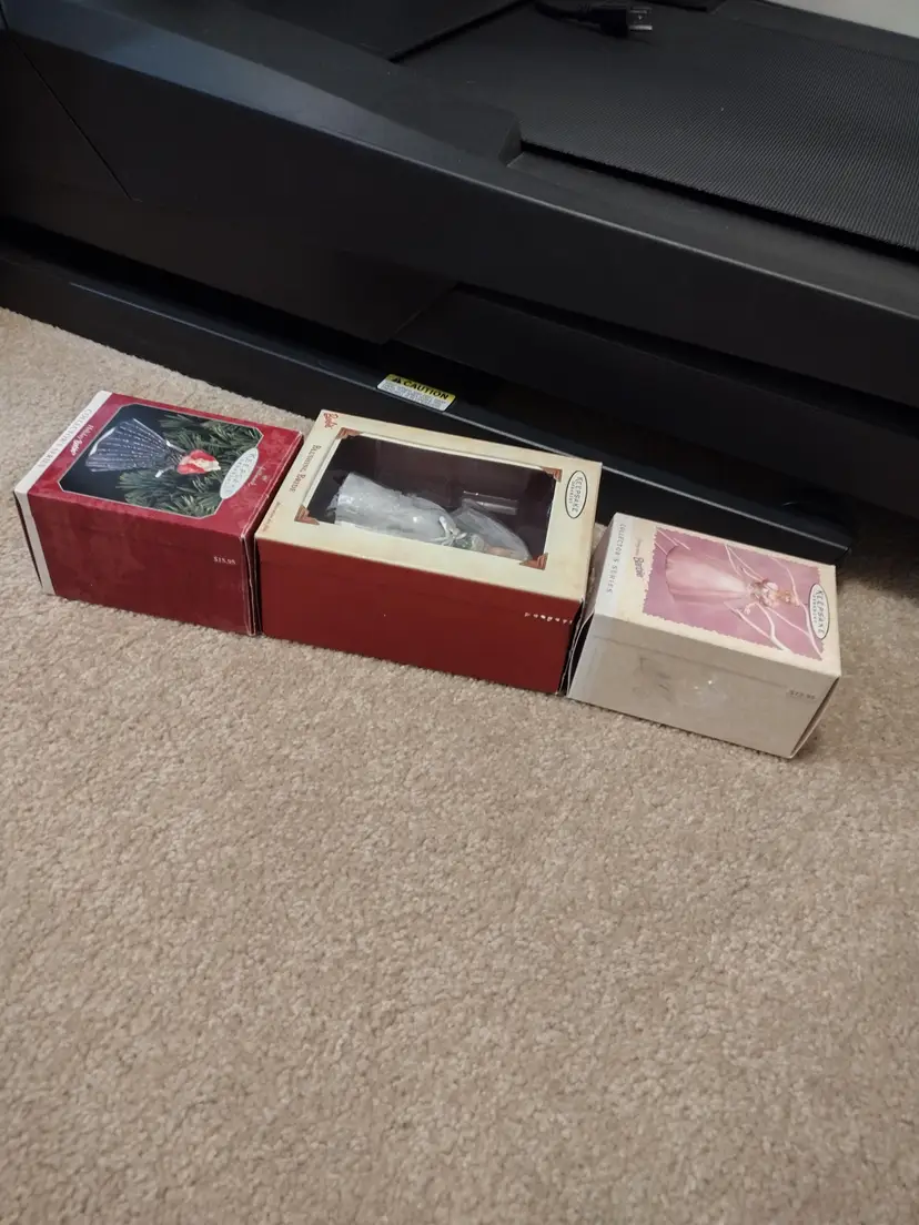 3 ornaments are brand new, outside of boxes have some wear to them, see photos