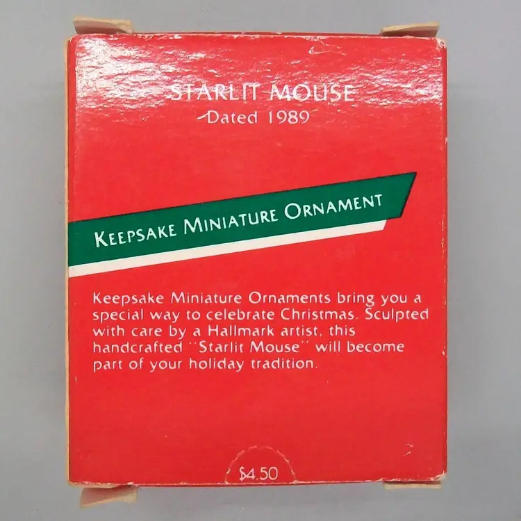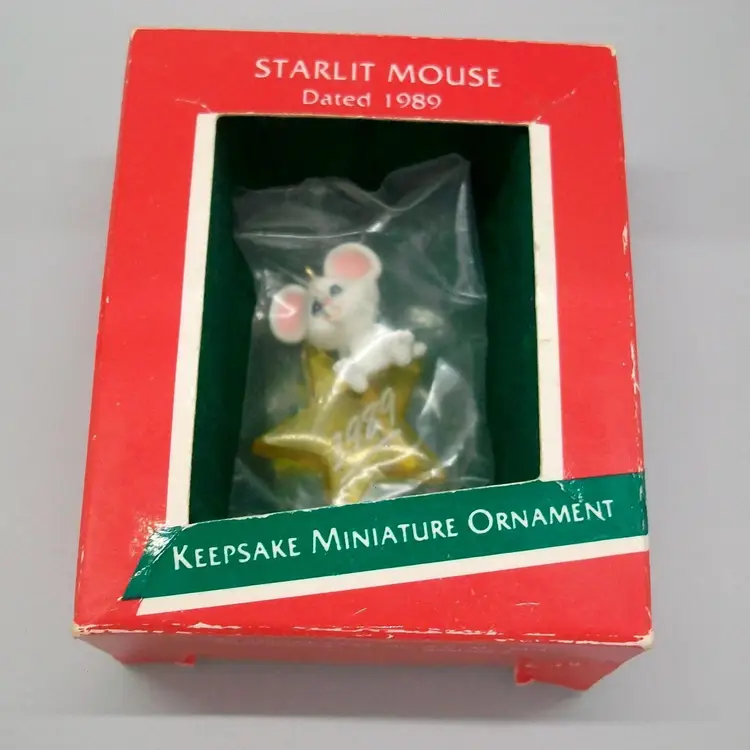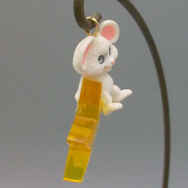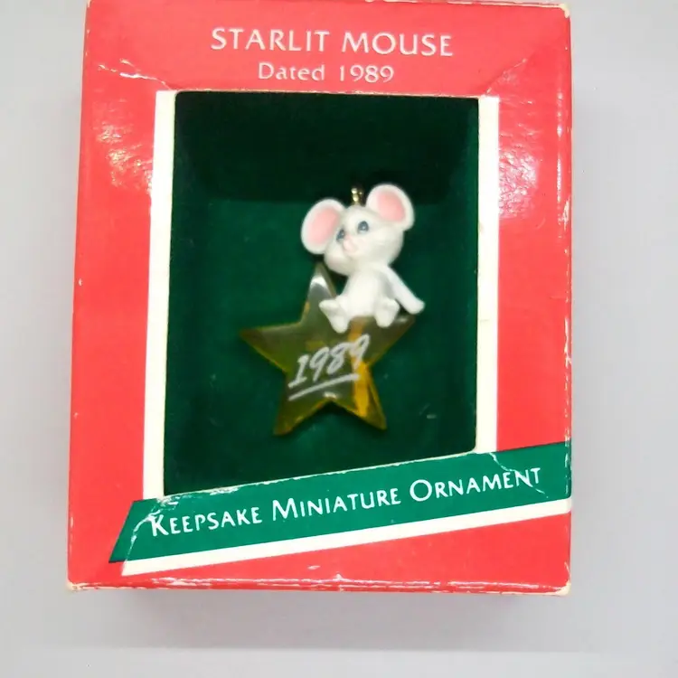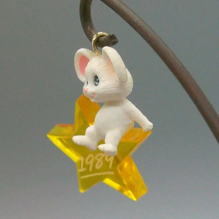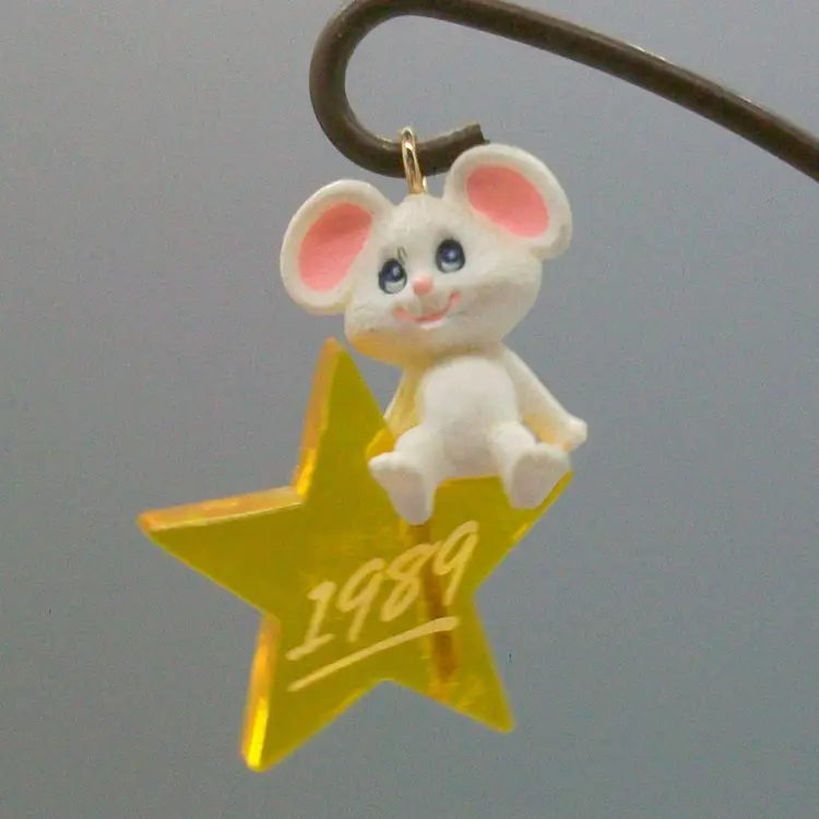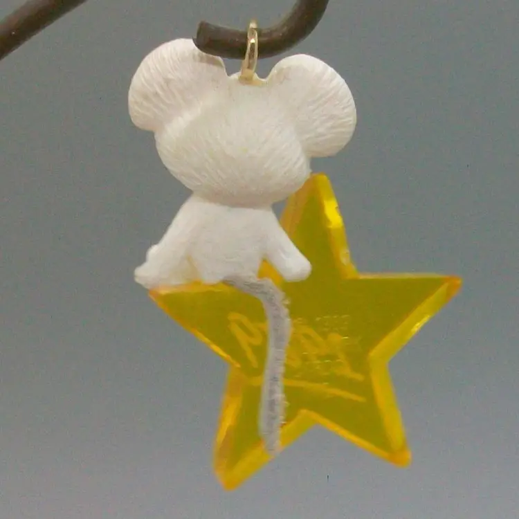 Cute little white mouse sitting on clear yellow star Dated 1989 on star original box included measures 1.5"