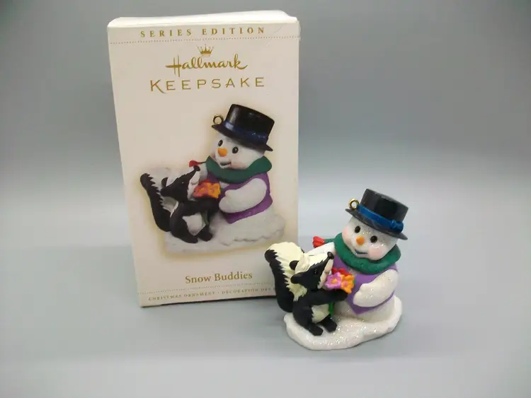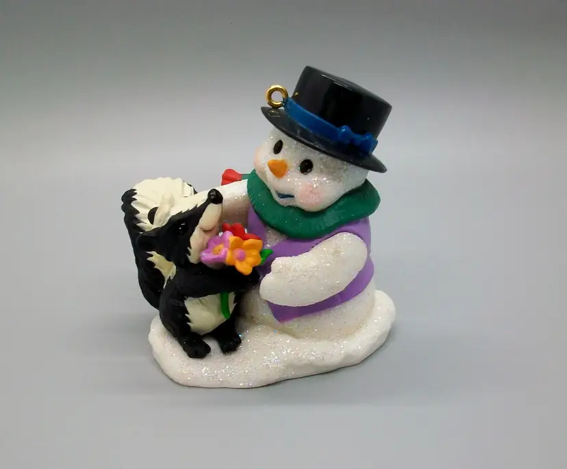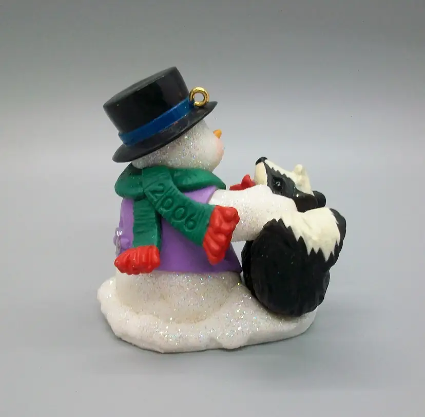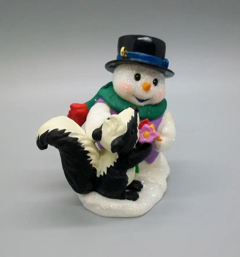 Snowman in Top Hat with skunk #9 in series dated 2006 Box included (some minor damage on top)
