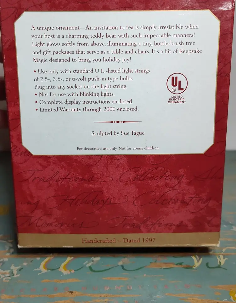 1997 Hallmark Keepsake light up Christmas ornament in box with paperwork, light cord & extra bulb.