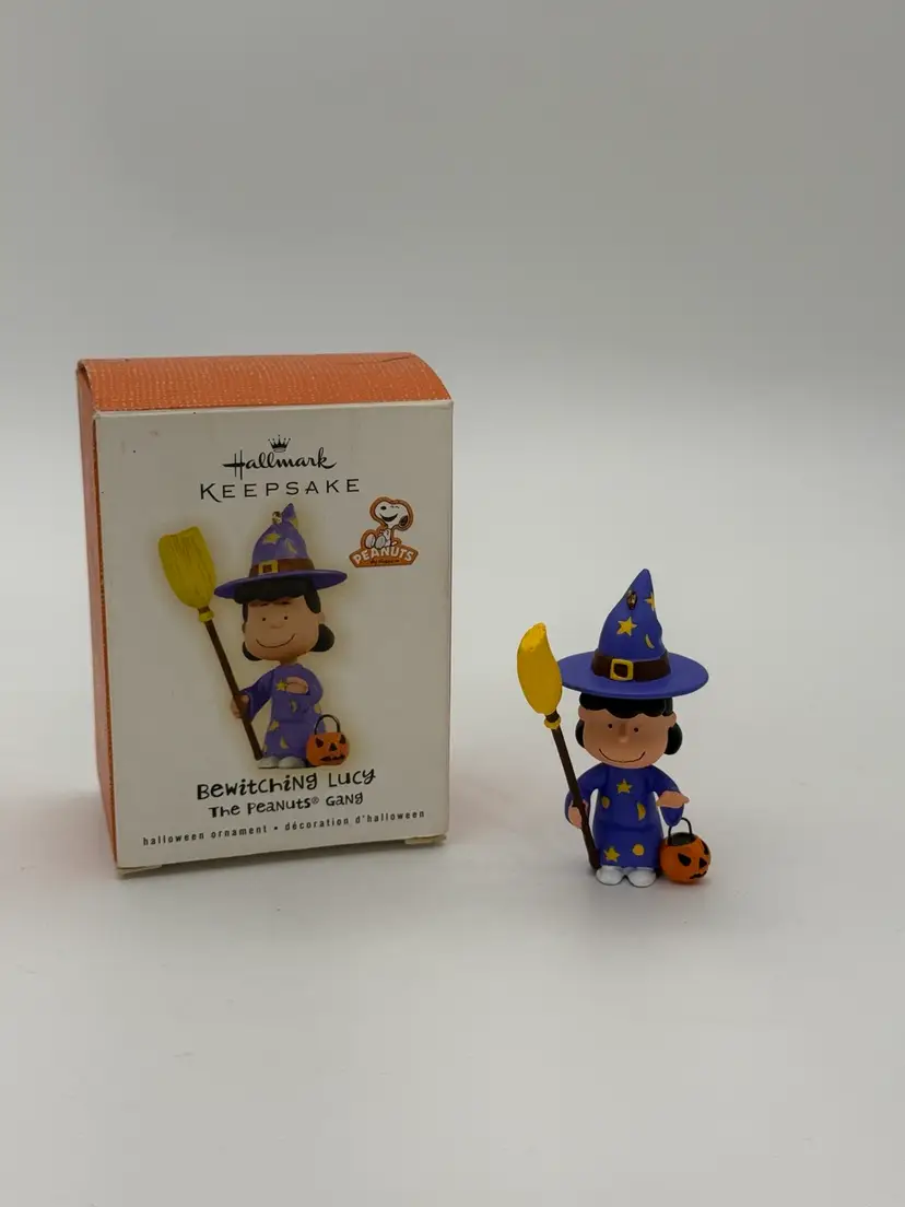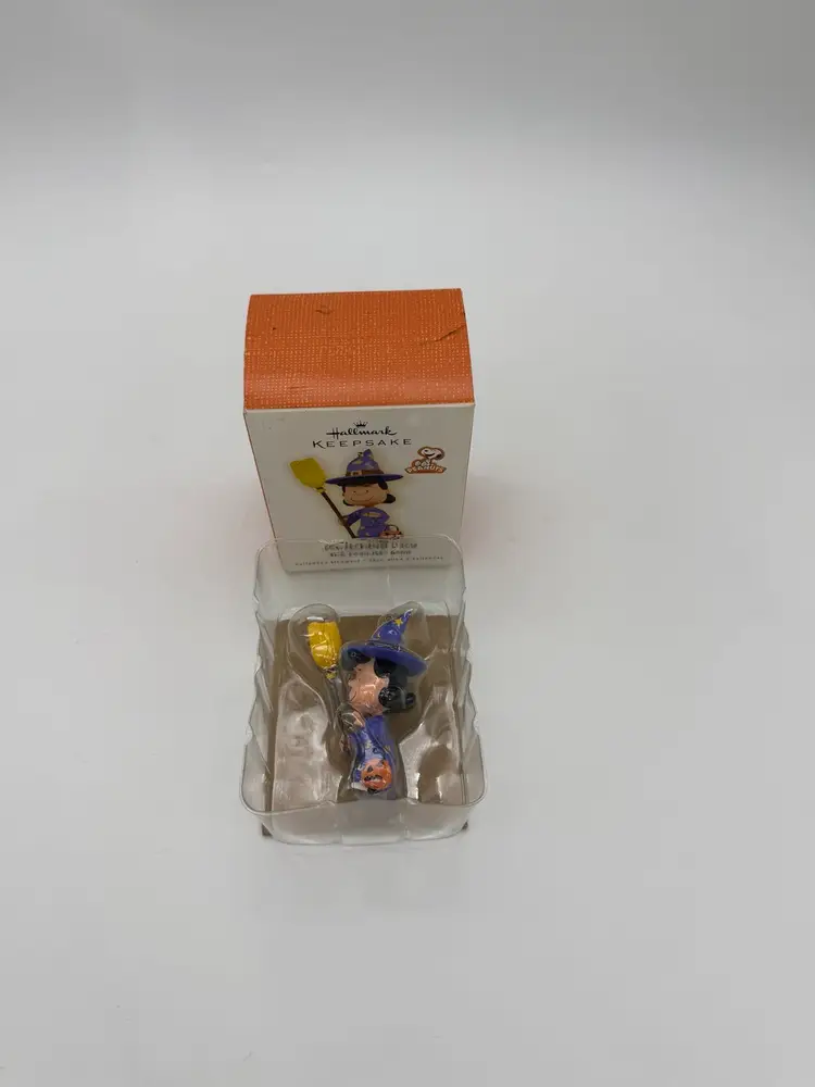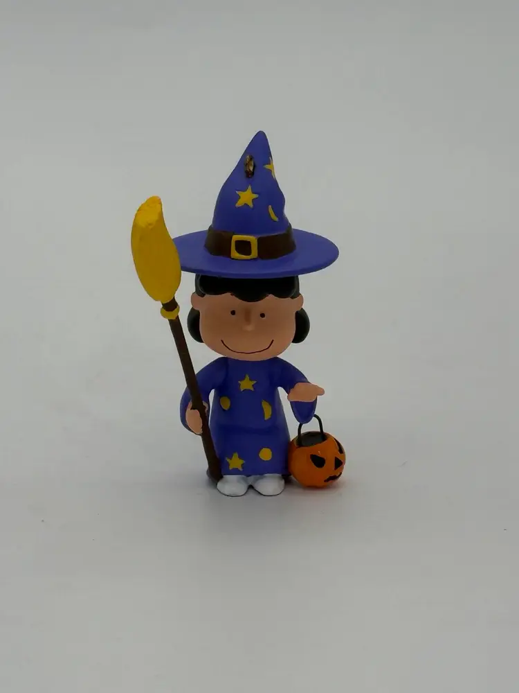 The Hallmark Ornament 2009 Bewitching Lucy is a small, hanging ornament featuring a witch-themed design with a broom and jack-o-lantern. This original, artist-designed piece is part of the Peanuts Halloween collection and is perfect for adding a festive touch to any holiday decor. Made from mixed materials and weighing 1.7 ounces, this multicolored ornament is themed around the Bewitching Lucy character from The Peanuts Gang, making it a delightful addition to any seasonal or cartoon-themed display.