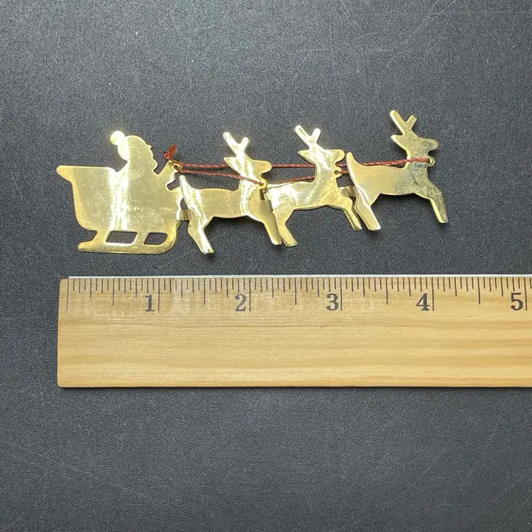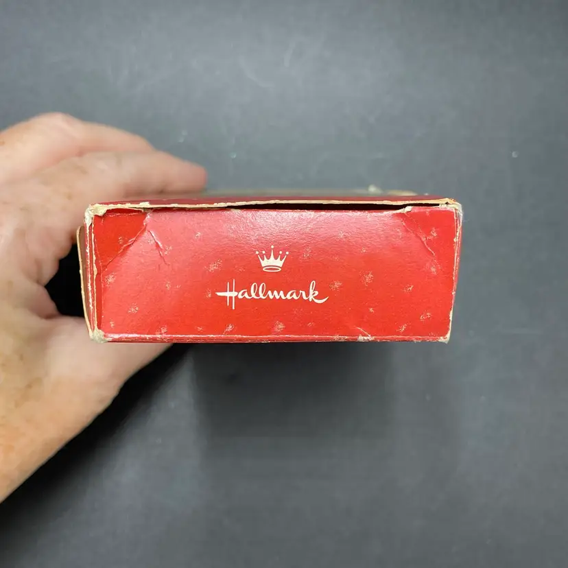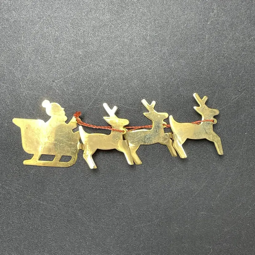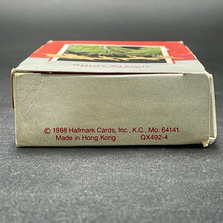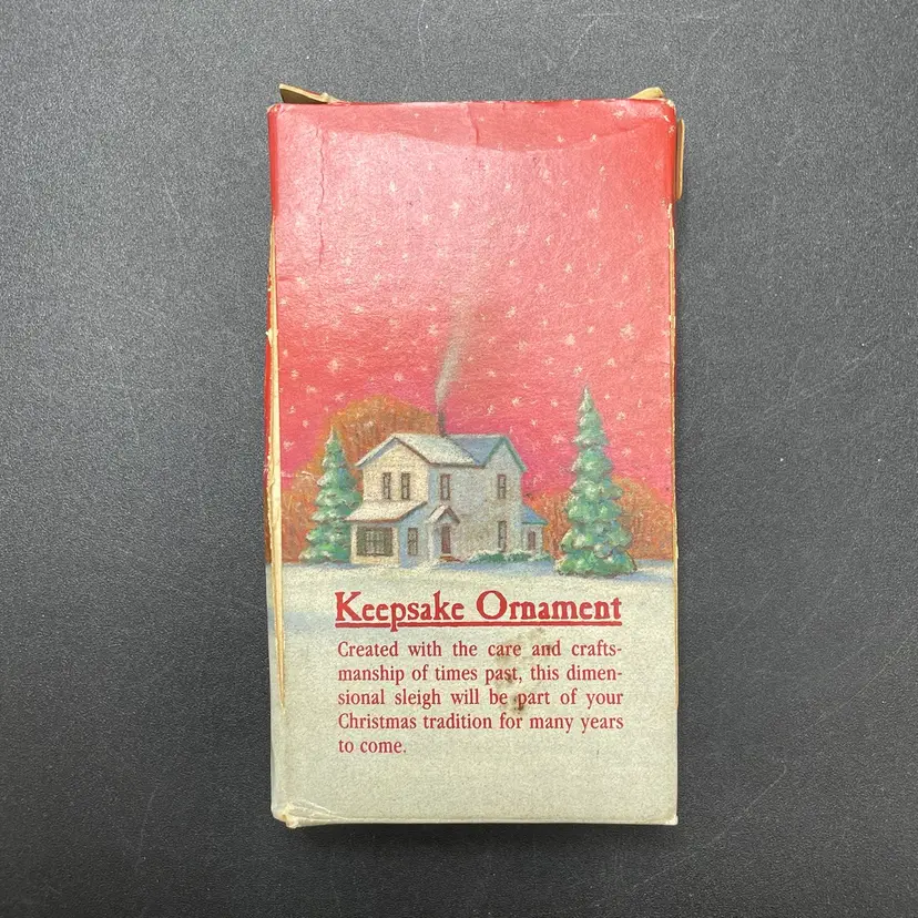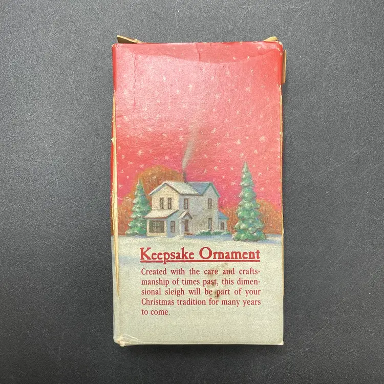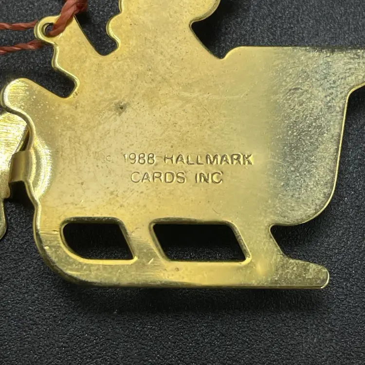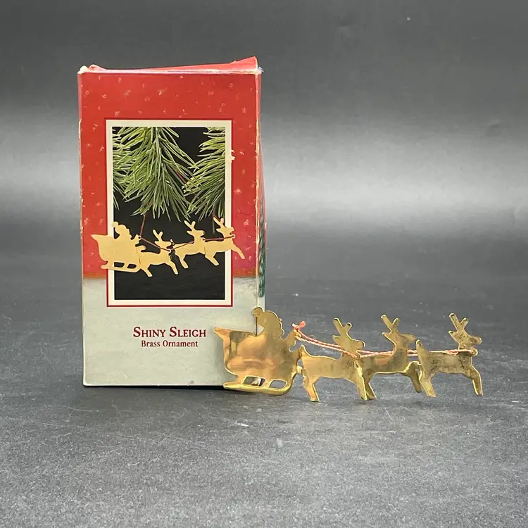 This is a vintage 1988 Hallmark brass Shiny Sleigh hanging ornament in its original box. Measures approximately 4.25" long. No major flaws.