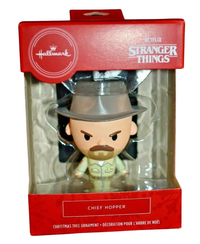 This officially licensed ornament celebrates Chief Hopper from Netflix's Stranger Things. Crafted by Hallmark, it brings a touch of pop culture to holiday décor. It captures Hopper's iconic look and is ideal for fans of the series, making it an excellent collector's piece or festive decoration for Stranger Things enthusiasts.