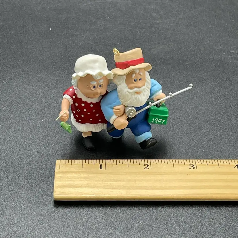 This is a vintage 1997 Hallmark Keepsake 1st in Series The Clauses on Vacation hanging ornament. Measures approximately 2.5" tall x 2.5" long. No box. No major flaws.