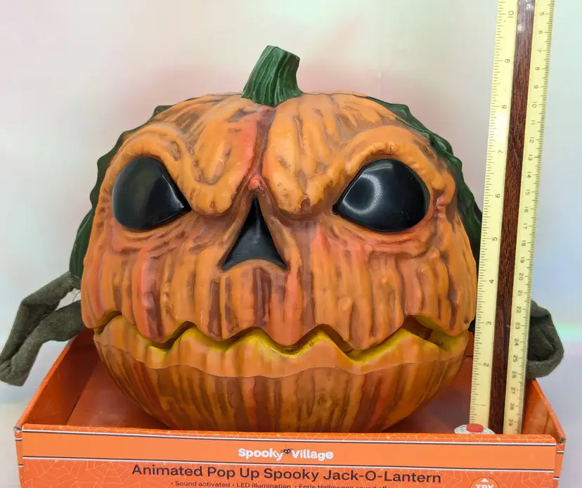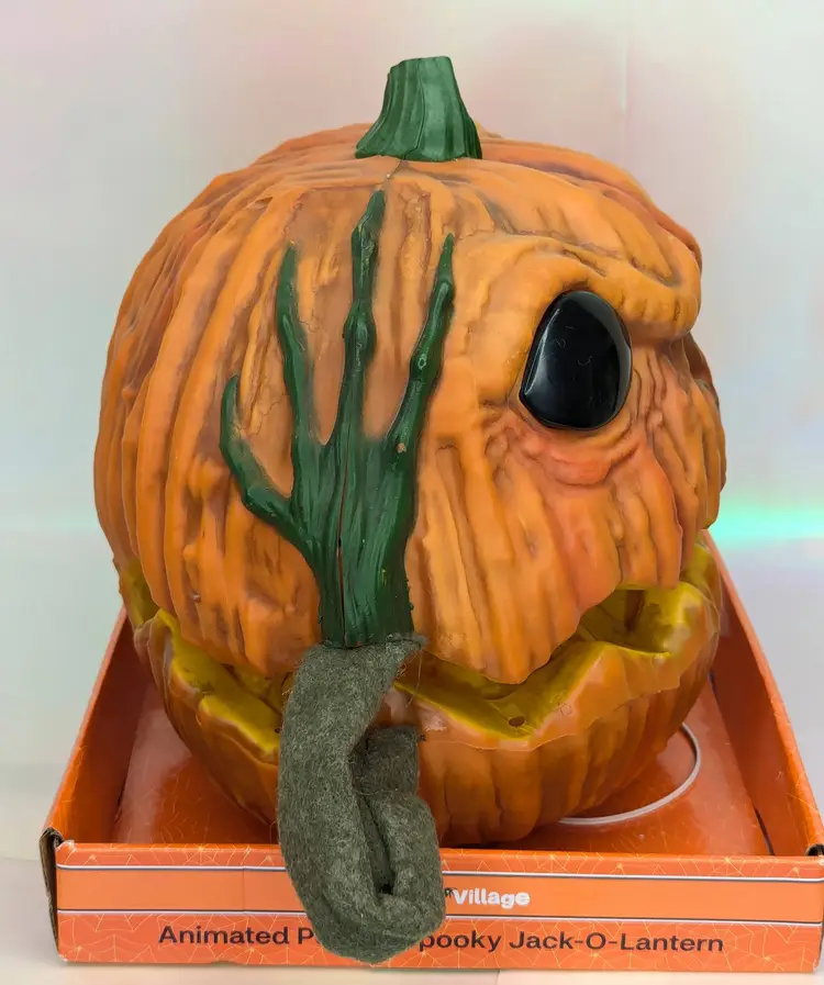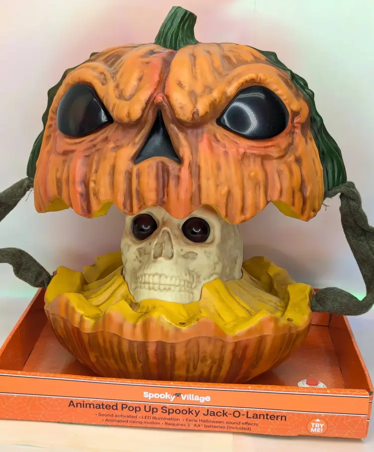 Halloween Animated Spooky village Pumpkin Jack-o-Lantern Pop Up Skull Horror Sound New in box - works! - Light box wear Great item for any Halloween decor! Comes from a smoke free, pet friendly home
