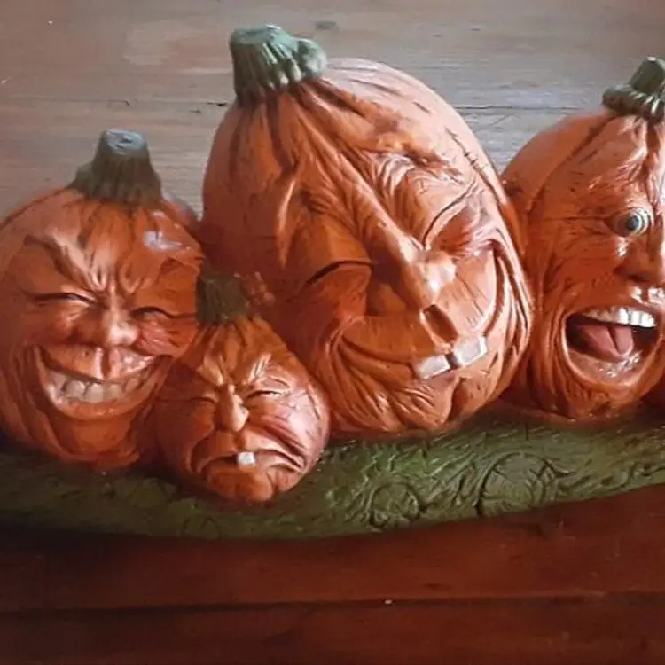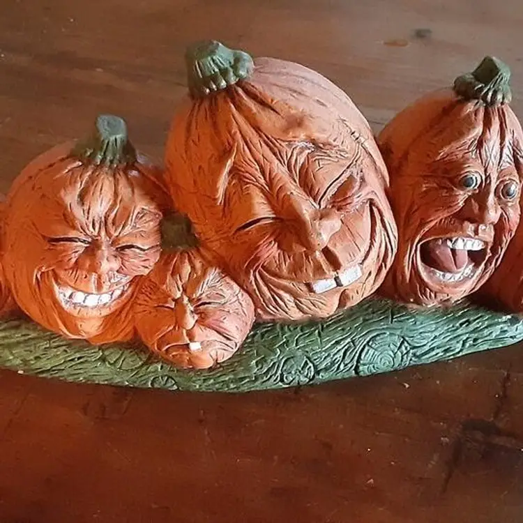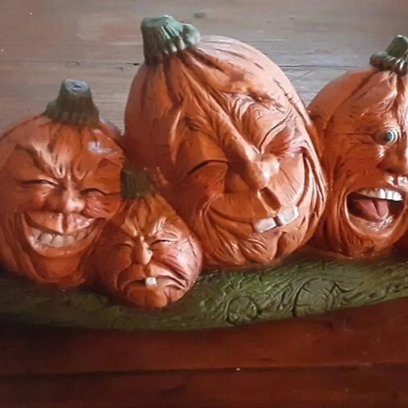Halloween Ceramic Pumpkin (6) Heads - Very Rare - HTF 8.5 Long - Smiling - Laughing - Grimacing - Table Home Decor