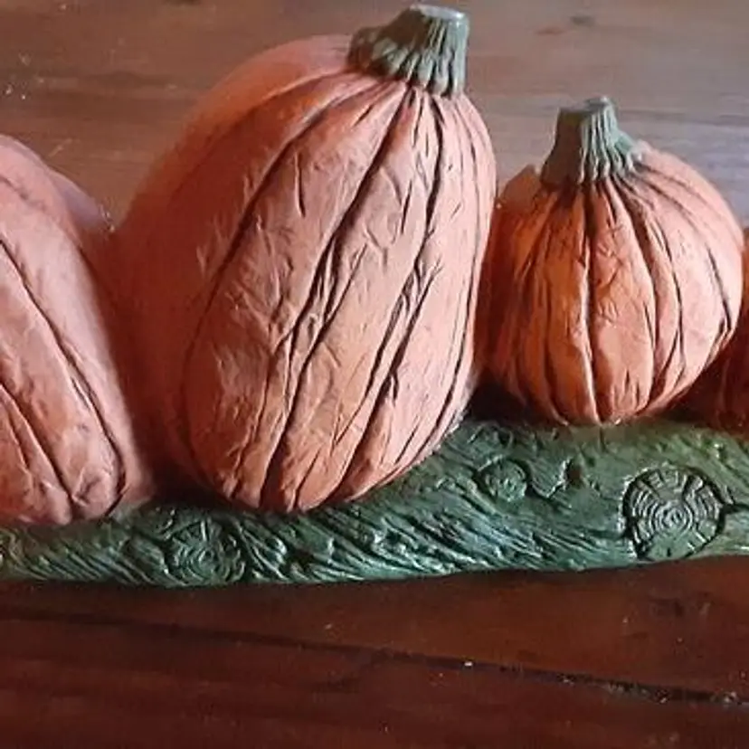 Found these anthropomophic pumpkins sitting on a log at an amazing estate sale. Won't find another one like this. It's in great condition and great for any table decor.I think it is signed but very hard to read.